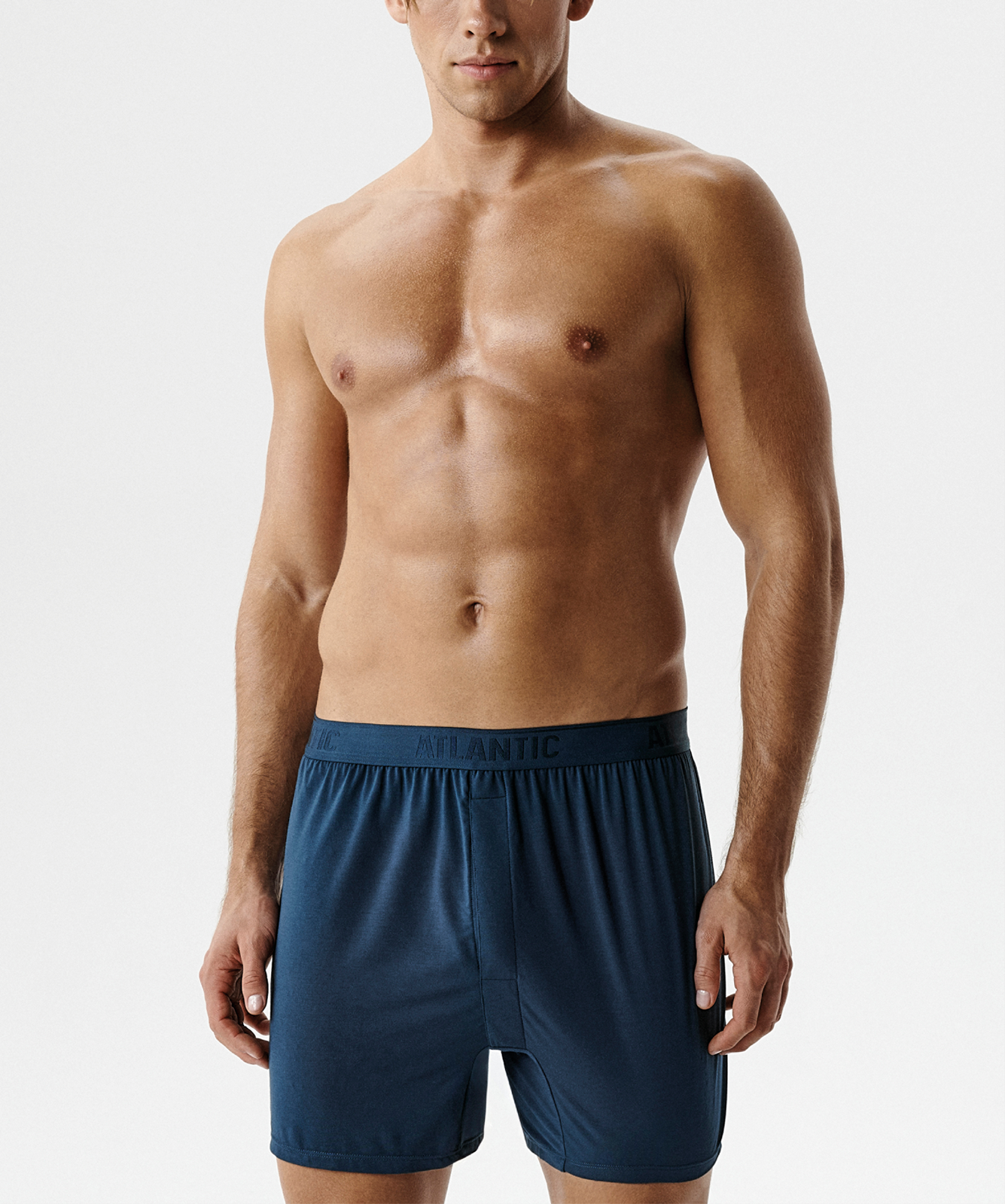Мужские трусы-боксеры Atlantic MBX-662, сине-зеленого цвета. Модель премиального качества, выполнена из экологически чистого и современного материала - модала, который отличается легкостью, мягкостью и практичностью. Классический свободный крой обеспечивает идеальную посадку, свободу движений и комфорт при повседневной носке. Удобная пришивная, брендированная резинка из микрофибры с молочной нитью не сдавливает и не натирает кожу. Универсальная линия талии и длина до середины бедра сочетаются с любым стилем одежды. Широкая размерная сетка от S до 3XL. Стильная упаковка делает этот набор отличным подарком. Польский бренд Atlantic предлагает премиальное мужское белье для ценителей качества. Купите мужские трусы-боксеры Atlantic MBX-662 по выгодной цене и с быстрой доставкой.