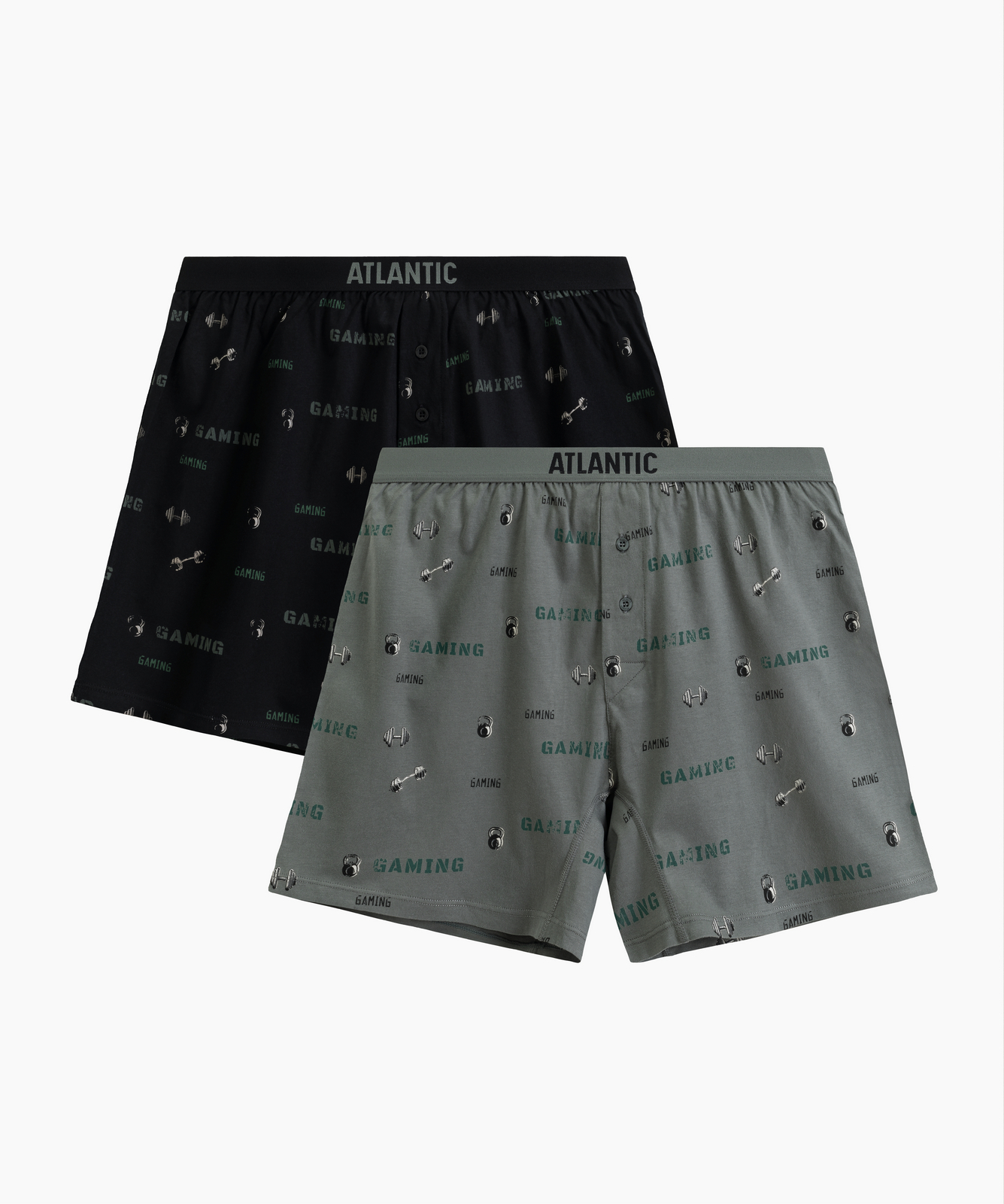 Мужские трусы боксеры Atlantic, набор из 2 шт., хлопок, черные + светлые хаки, 2MBX-084