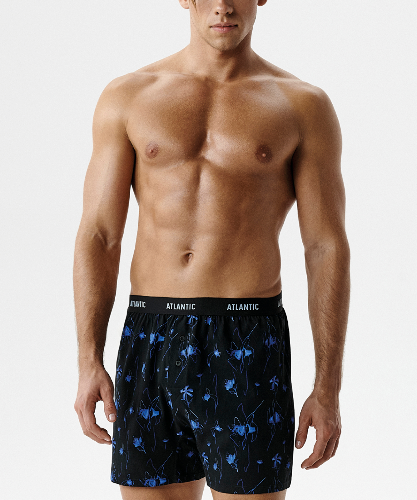 Набор из двух мужских трусов-боксеров Atlantic 2MBX-093 — это идеальное решение для повседневного комфорта. В упаковке вы найдете две пары боксеров, одна модель - однотонная, другая - с контрастным ярким принтом в виде цветов в цвете: черный + голубой. Модель выполнена из 100% мягкого хлопка, который обеспечивает приятные тактильные ощущения, позволяет коже дышать и гарантирует комфорт в течение всего дня. Свободный классический крой и внешняя пришивная резинка из микрофибры обеспечивают идеальную посадку, не давят и не натирают. Благодаря длине штанин до середины бедра эти боксеры отлично подходят для ношения под любую одежду — от джинсов до классических брюк, а также для занятий спортом. Прочное трикотажное полотно устойчиво к растяжению и сохраняет форму после множества стирок. Широкая размерная сетка (от S до 4XL) и стильная фирменная упаковка делают этот набор отличным выбором для себя или в качестве подарка для мужчины любого возраста.