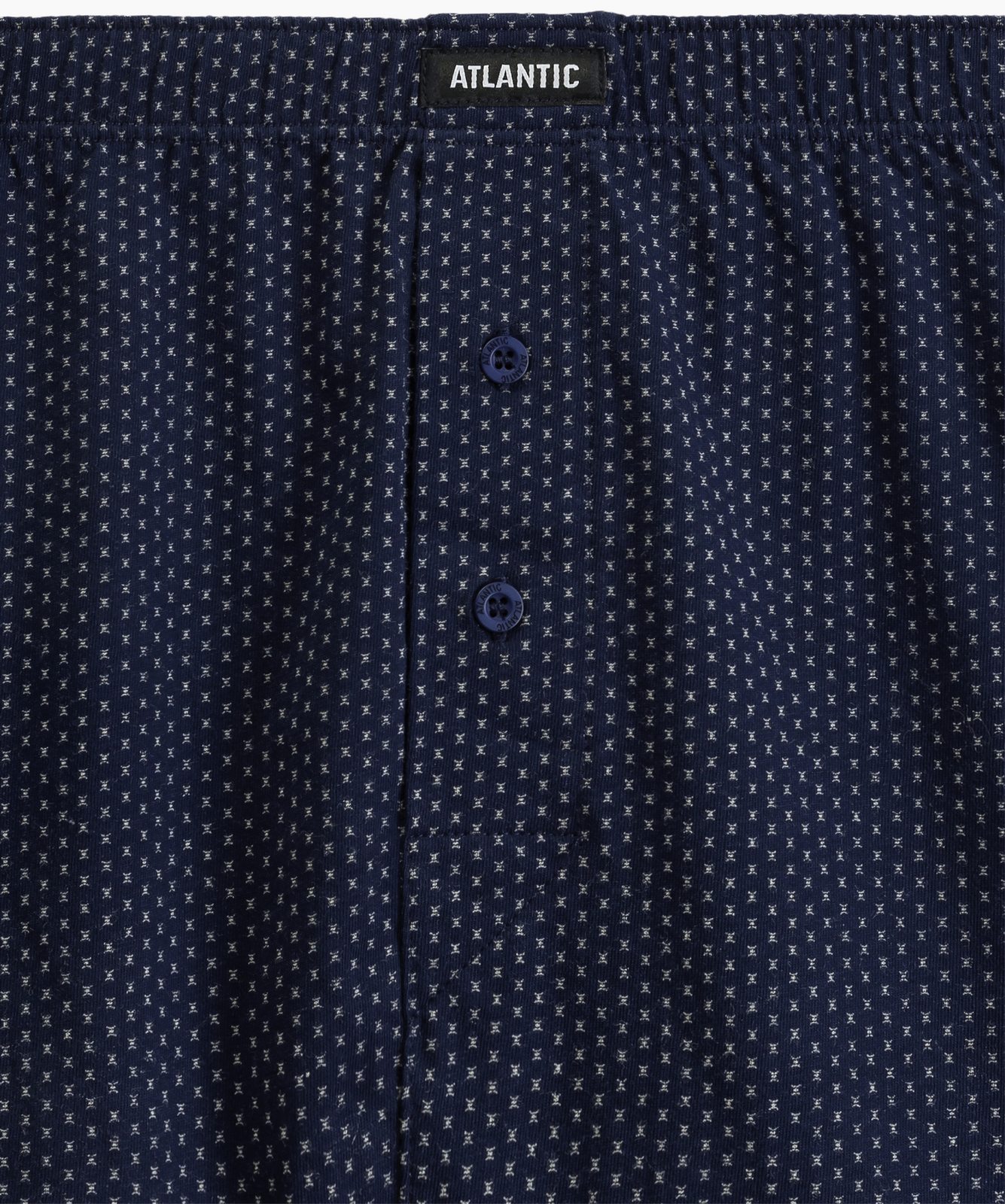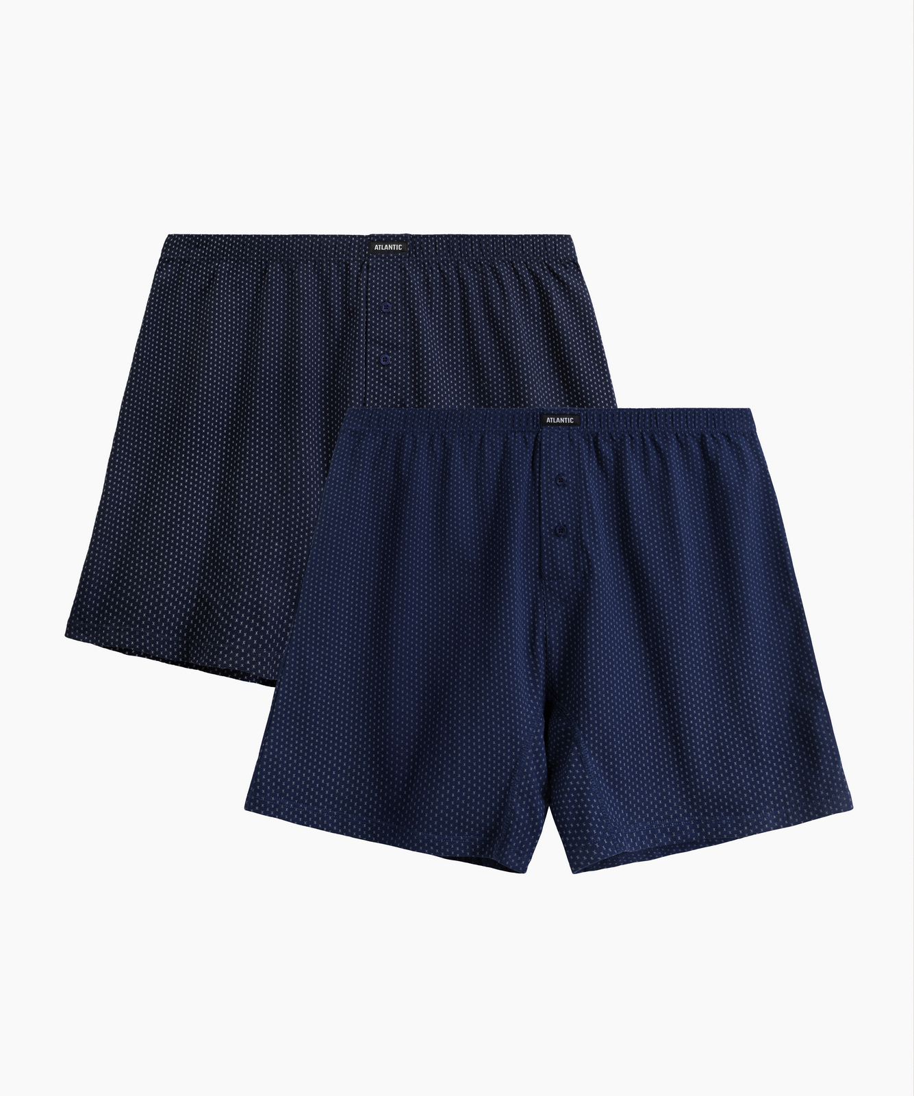 Набор из 2 мужских трусов-боксеров Atlantic 2MBX-079 — стиль и комфорт в цвете кобальт и тёмно-голубом. В комплекте две модели мужских семейных трусов с интересным графическим принтом. Свободный крой со стандартной линией талии и удлиненными штанинами обеспечивает идеальную посадку и свободу движений. Мягкий 100% хлопок и скрытая туннельная резинка гарантируют комфорт при ежедневной носке. Прочный материал сохраняет форму и цвет после множества стирок. Размерная сетка от S до 4XL подойдет мужчинам любого телосложения. Стильная упаковка делает набор отличным подарком. Atlantic 2MBX-079 — отличный выбор для тех, кто ценит качество и удобство в повседневной жизни.