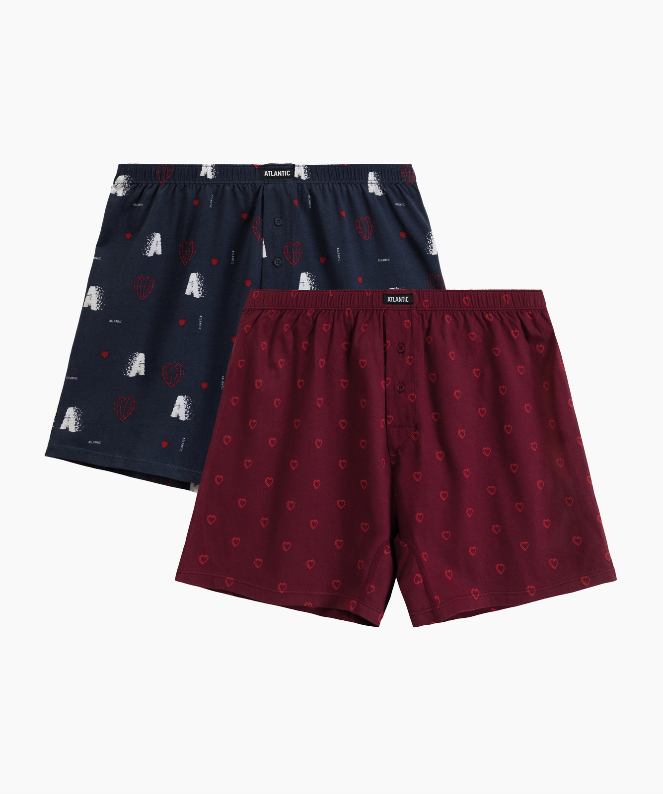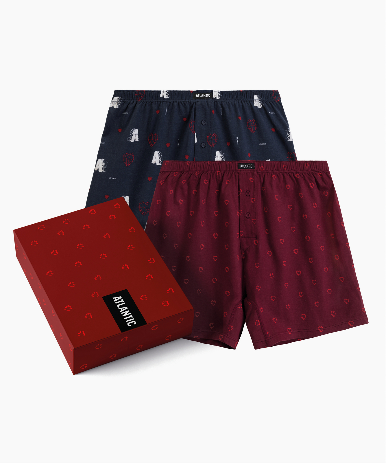 Мужские трусы боксеры Atlantic, набор из 2 шт., хлопок, темно-синие + красные, 2GMB-012