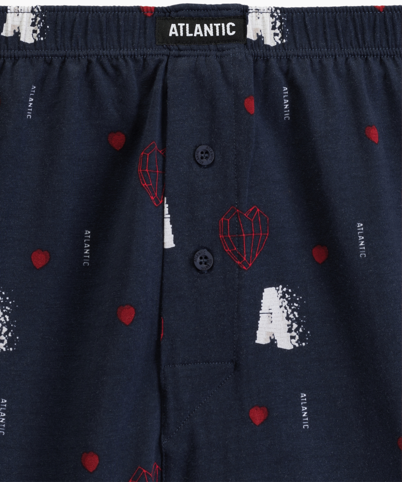 Подарочный набор из двух пар мужских трусов-боксеров Atlantic темно-синего+красного цвета из лимитированной коллекции GIFTbox — идеальное решение для подарка. Это нижнее белье с яркими и оригинальными принтами создаст прекрасное настроение и подарит незабываемые эмоции. Модель 2GMB-012 от польского бренда Atlantic подойдет для повседневной носки и занятий спортом.
