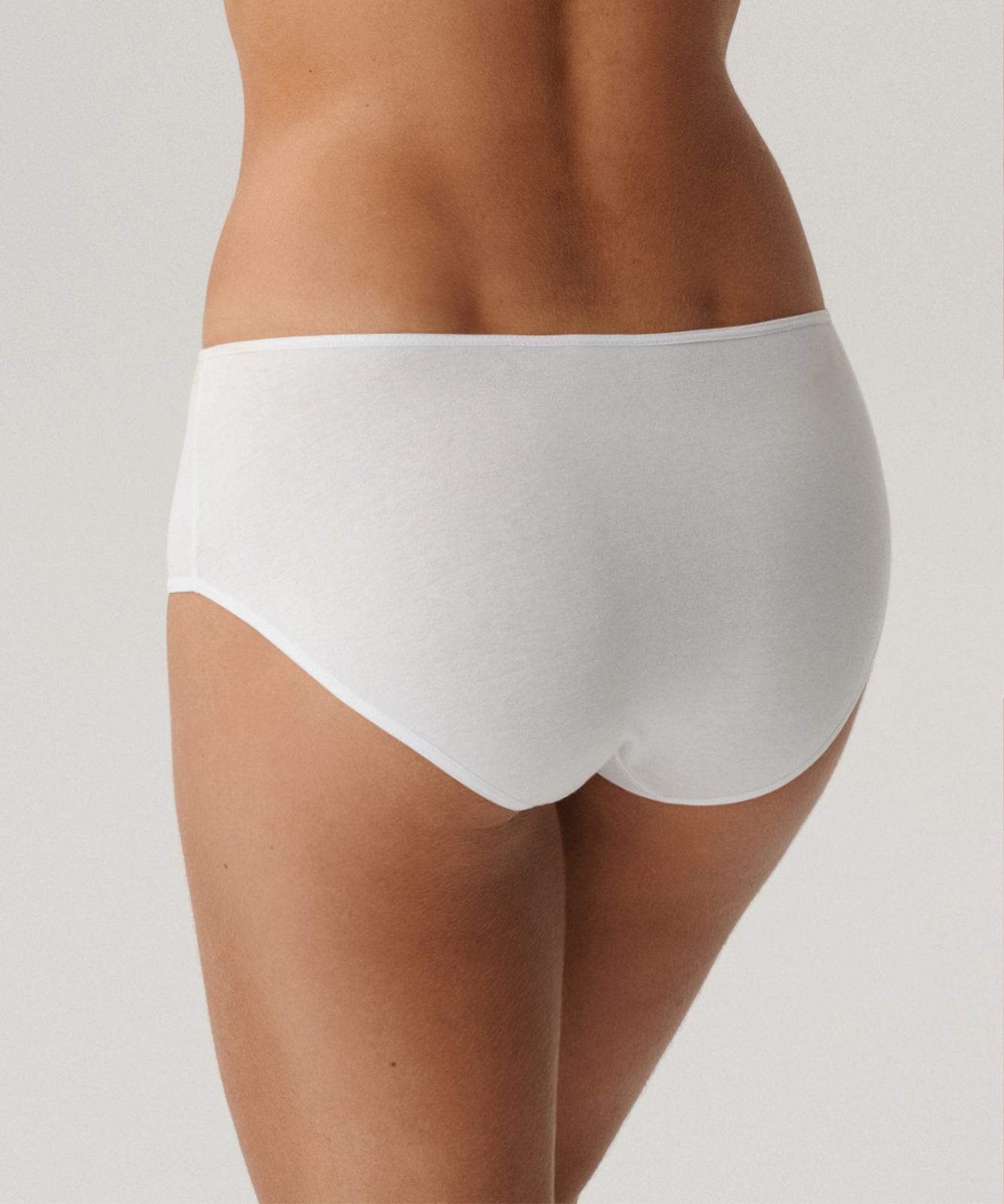 Модель со средней линией талии и широкой боковой деталью, закрыта сзади. По посадке напоминает трусики-шорты. Идеально подходит для повседневной носки.