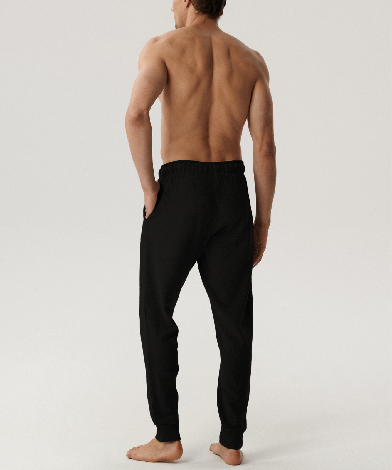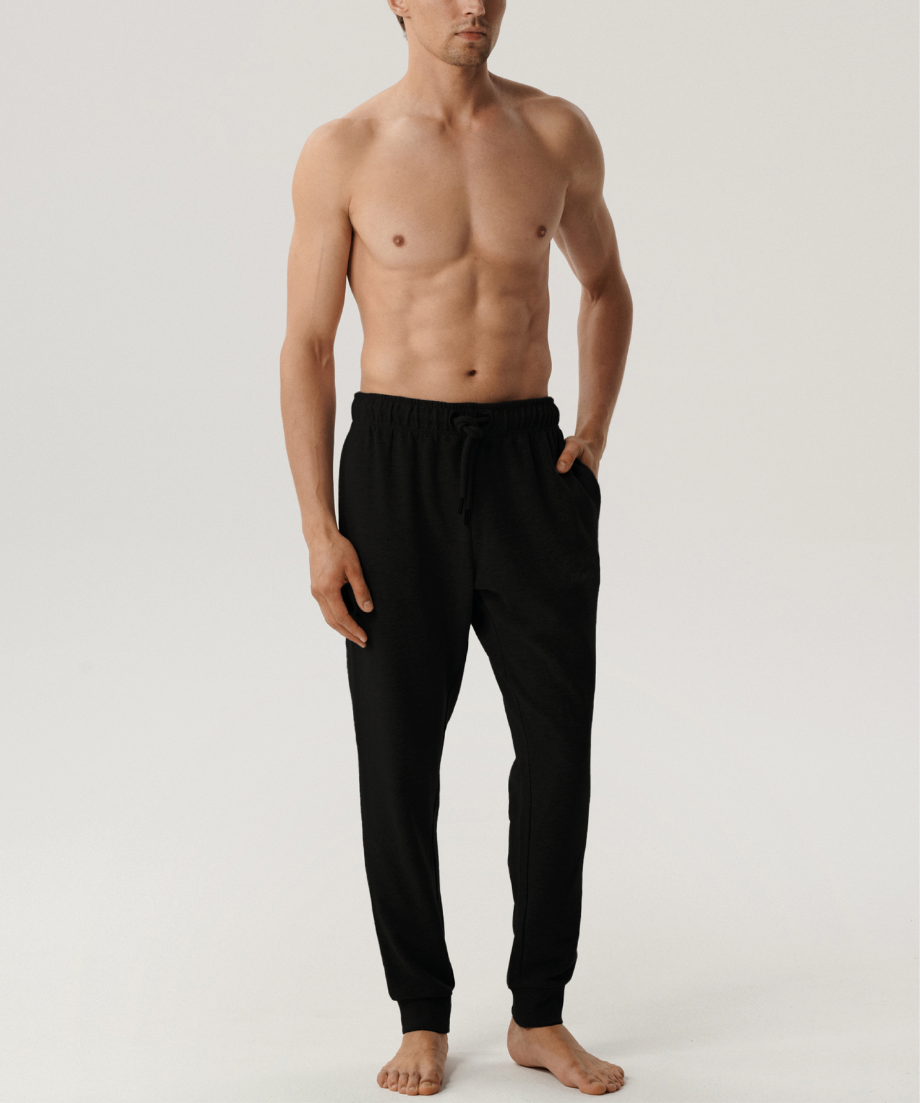 Мужские тренировочные брюки Atlantic черного цвета из коллекции Loungewear — это универсальная модель для спорта и повседневной носки. Модель HMB-001 выполнена из высококачественного хлопка, обработанного по технологии "Peach Effect" для создания мягкой бархатистой поверхности. Свободный крой и эластичный пояс с завязками обеспечивают идеальную посадку и индивидуальную регулировку. Практичные боковые карманы и резинка внизу штанин добавляют удобства во время тренировок и прогулок.