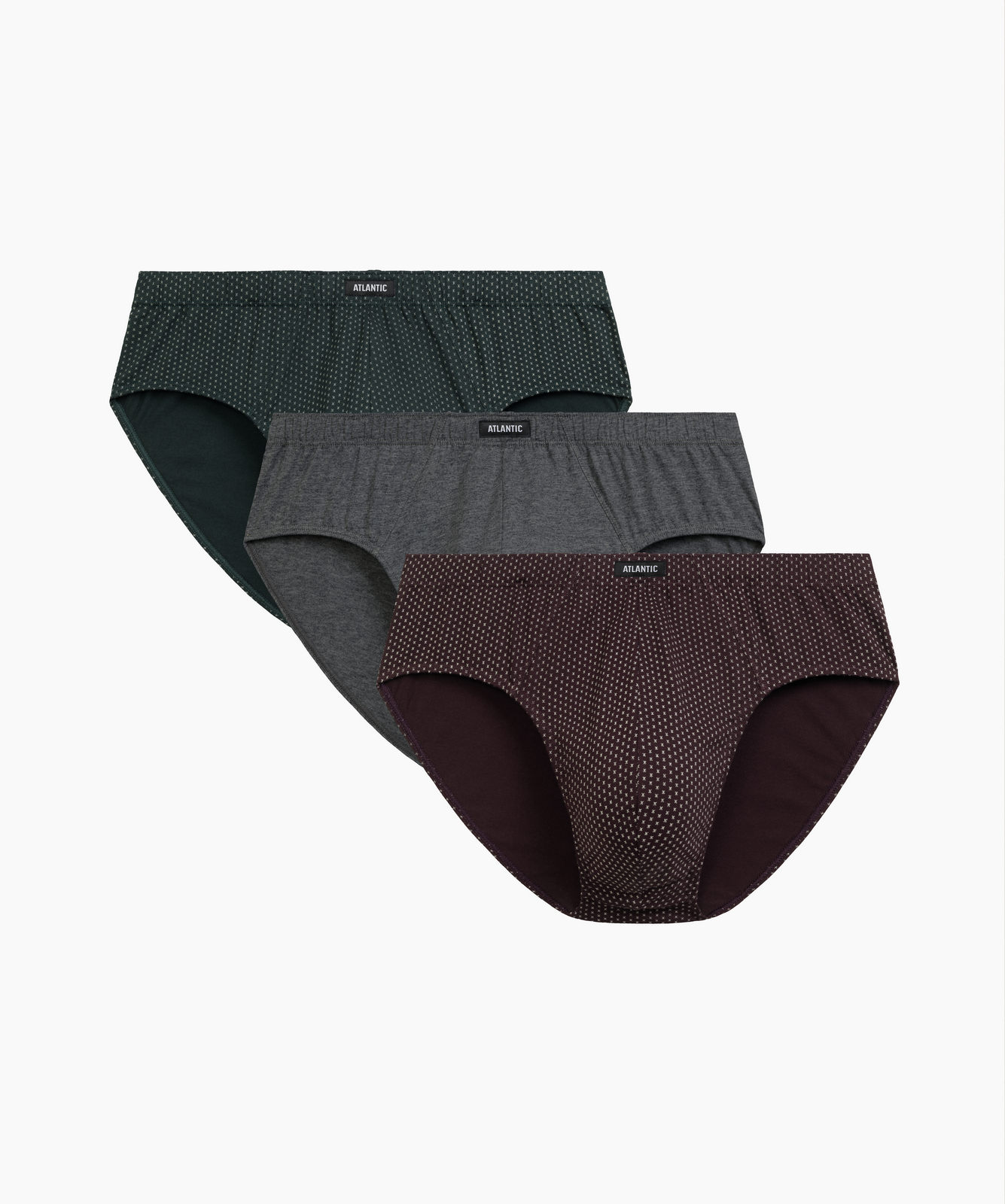 Набор из трёх мужских трусов-слипов Atlantic 3MP-202 — это практичное базовое бельё для любого дня. В комплекте три модели в актуальных цветах: изумрудном, тёмно-сером меланж и баклажановом, включая как однотонные варианты, так и стилизованный принт. Классический анатомический крой с высокой линией талии и широкой боковой частью обеспечивает комфортную поддержку и идеальную посадку. Мягкая резинка не давит, а натуральный 100% хлопок приятен к телу и сохраняет форму после множества стирок. Широкая размерная линейка от S до 4XL позволяет выбрать идеальный размер. Набор представлен в стильной фирменной упаковке, что делает его готовым и аккуратным подарком. Atlantic 3MP-202 — это выбор в пользу проверенного качества, простоты и повседневного удобства.