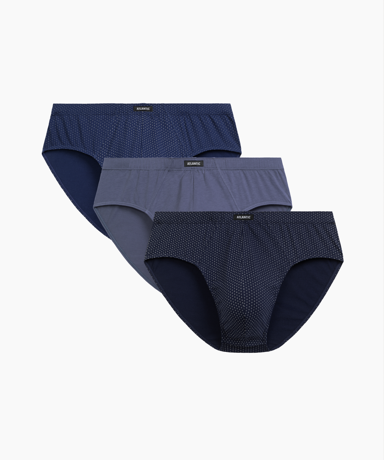 Мужские трусы слипы классика Atlantic, набор 3 шт., хлопок, кобальтовые + деним + темно-голубые, 3MP-202
