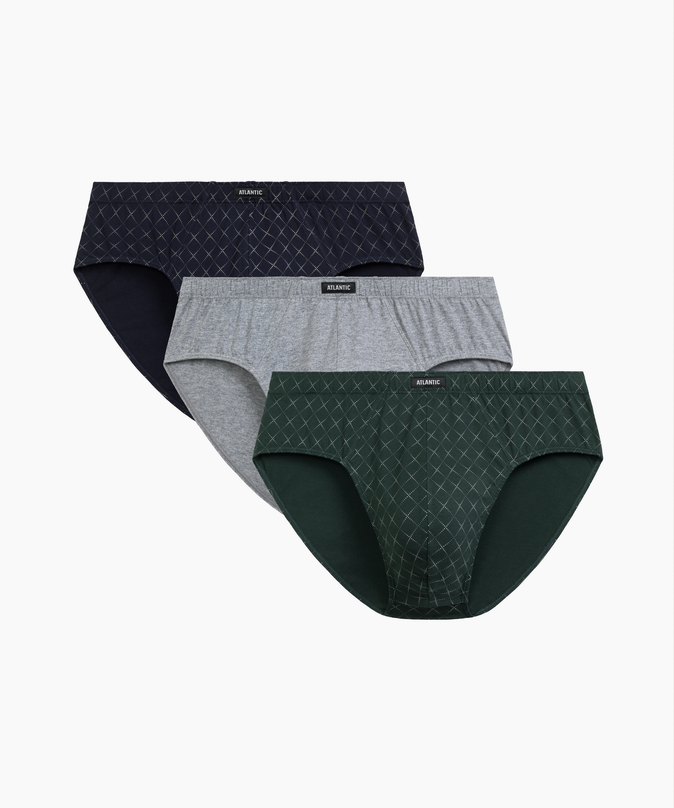 Мужские трусы слипы классика Atlantic, набор 3 шт., хлопок, тёмно-синие + серый меланж + зелёные, 3MP-205