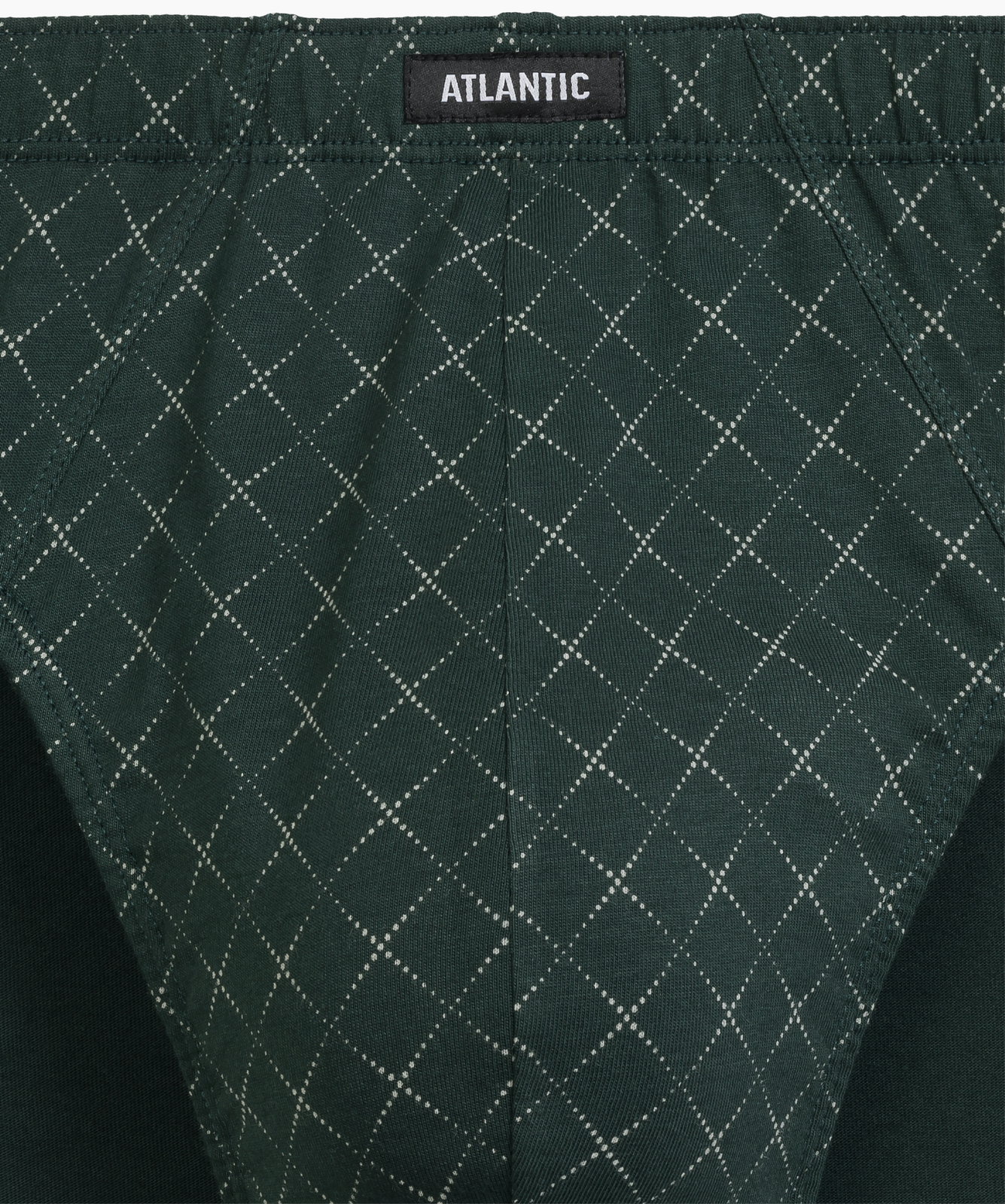 Набор из 3 мужских трусов-слипов Atlantic 3MP-205 в цвете тёмно-синем, серый меланж и зеленый. Это практичное решение для повседневного использования. В комплекте вы получите три модели: однотонную и с классическим принтом, выполненные из 100% хлопка. Трусы-слипы с комфортным классическим кроем с достаточно высокой линией талии и широкой боковой частью станут отличным выбором для людей, предпочитающих классический стиль одежды и максимальный комфорт. Мягкая резинка исключает дискомфорт при носке, а качественный материал сохраняет форму после многократных стирок. Размерный ряд от S до 4XL позволяет подобрать вариант для любого телосложения. Набор упакован в фирменную коробку, что делает его отличным вариантом для подарка. Простота, удобство и проверенное качество – основные преимущества этой модели от Atlantic.