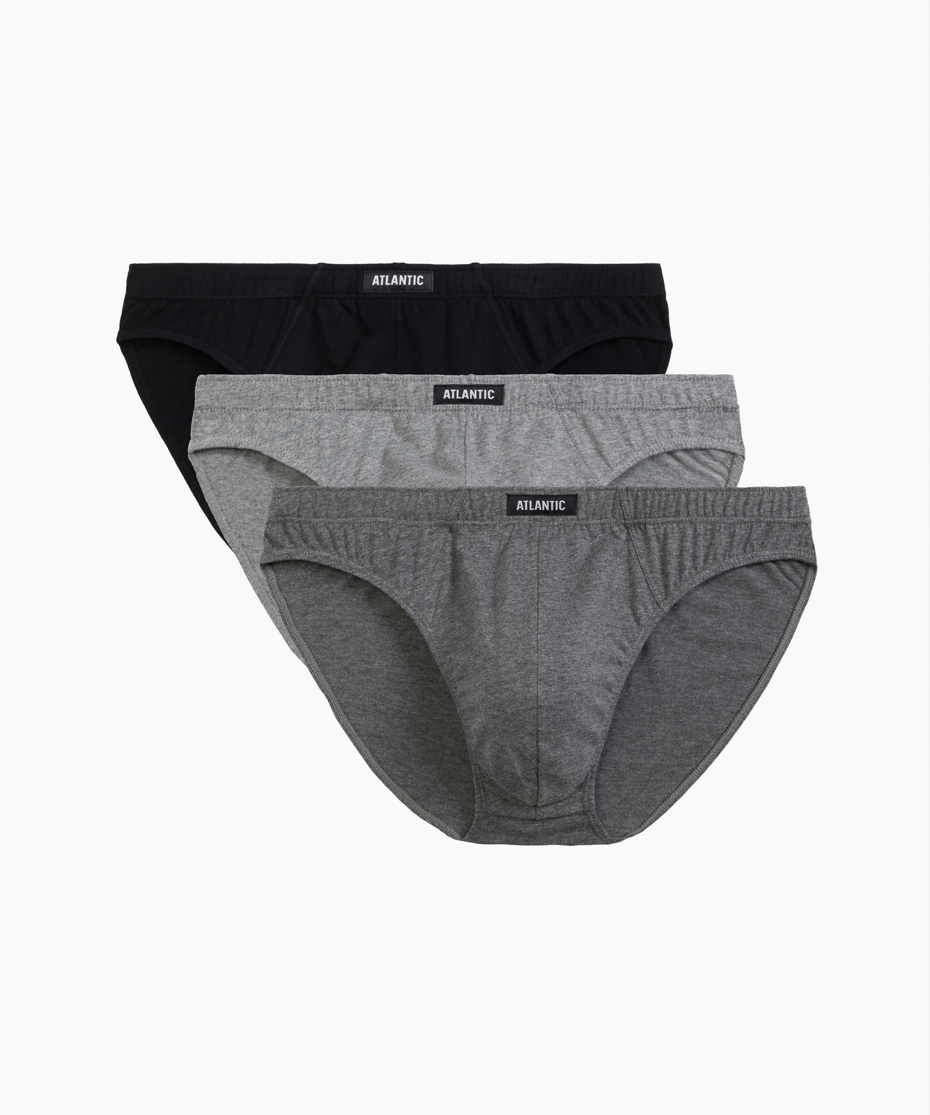 Набор из 3 мужских трусов-слипов Atlantic 3BMP-322 из базовой коллекции Basic — три универсальных оттенка: серый меланж, тёмно-серый меланж и классический чёрный. Модель с анатомическим кроем и слегка заниженной линией талии обеспечивает идеальную посадку и комфорт для повседневной носки и активного образа жизни. Скрытая туннельная резинка исключает давление и натирание. Натуральный 100% хлопок гарантирует мягкость, воздухопроницаемость и долговечность, сохраняя форму после множества стирок. Универсальная цветовая гамма легко сочетается с любым стилем одежды и послужит отличным дополнением вашего базового гардероба. Стильная фирменная упаковка делает набор практичным подарком. Доступны размеры от S до 4XL. Atlantic — проверенное качество и комфорт в каждой детали.