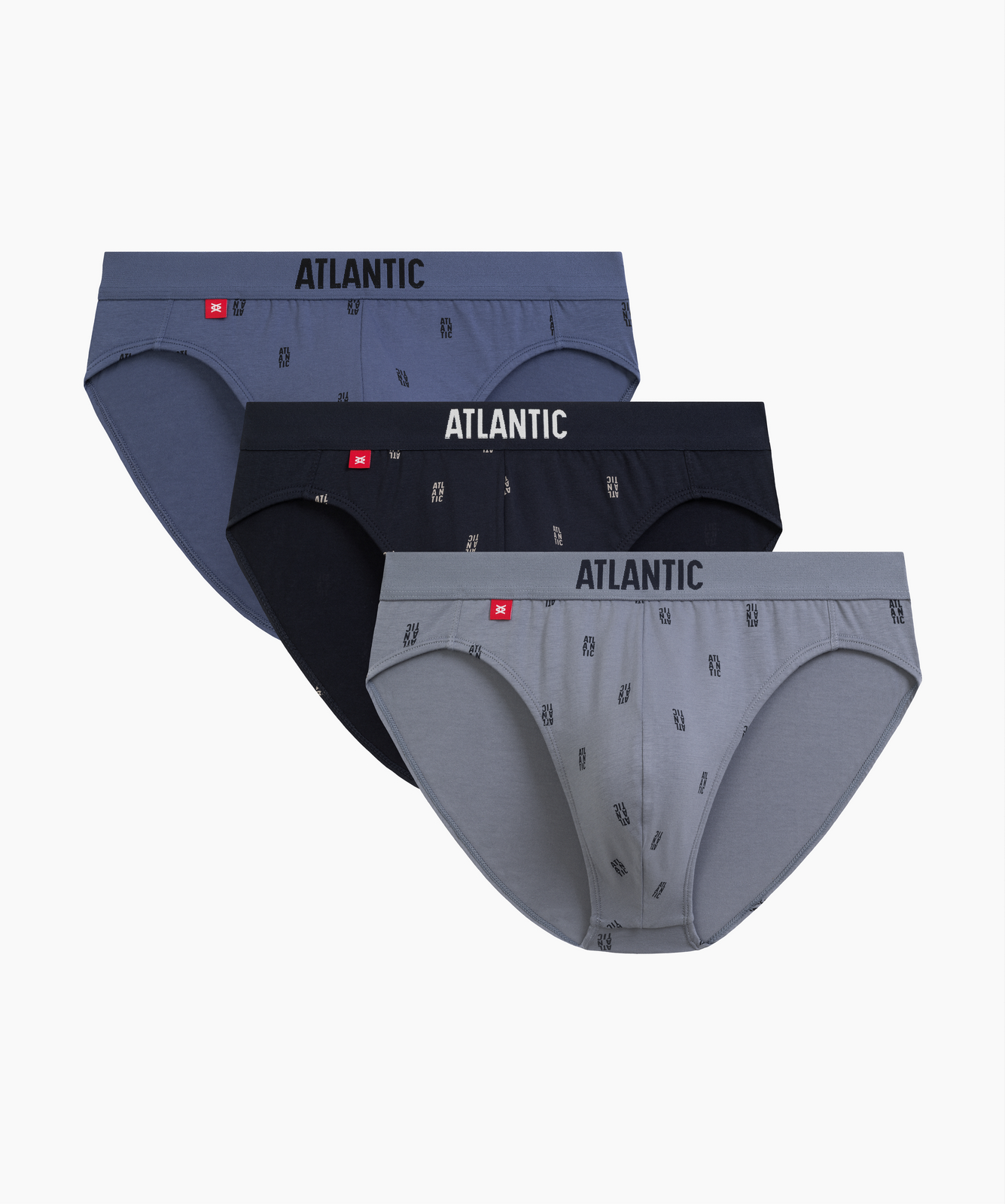 Мужские трусы слипы спорт Atlantic, набор 3 шт., хлопок, деним, темно-синие, темно-серые, 3MP-210