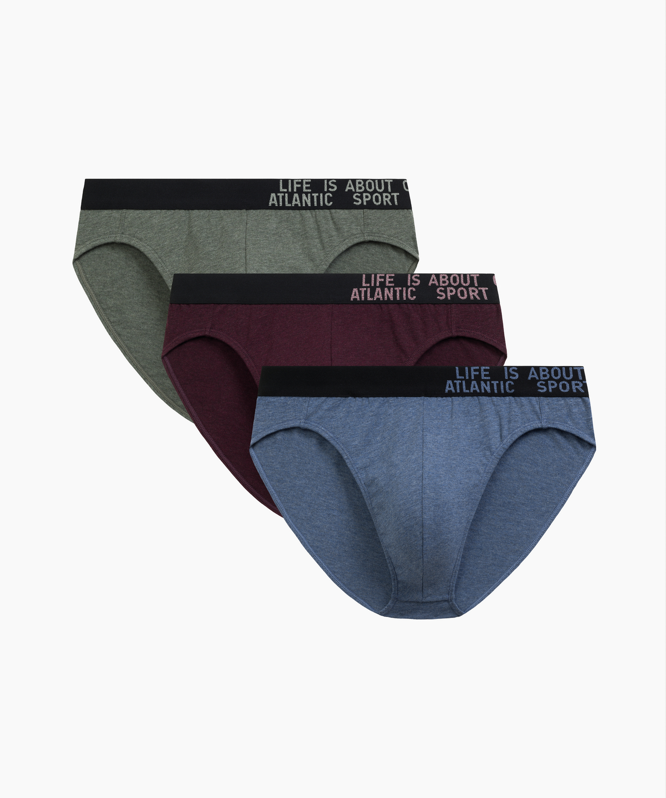 Мужские трусы слипы спорт Atlantic, набор 3 шт., хлопок, зеленый меланж + винный меланж + голубой меланж, 3MP-209