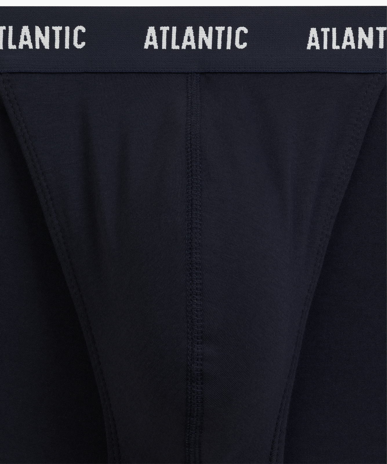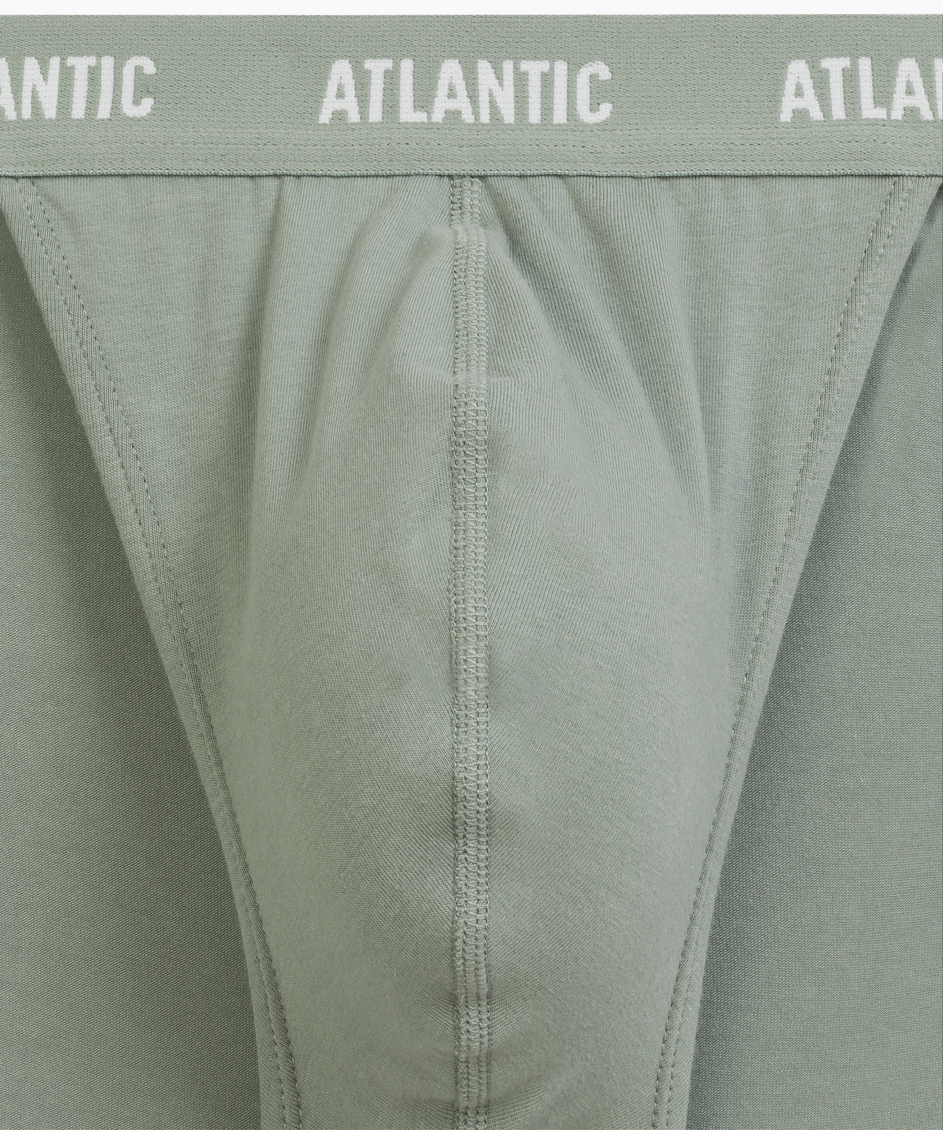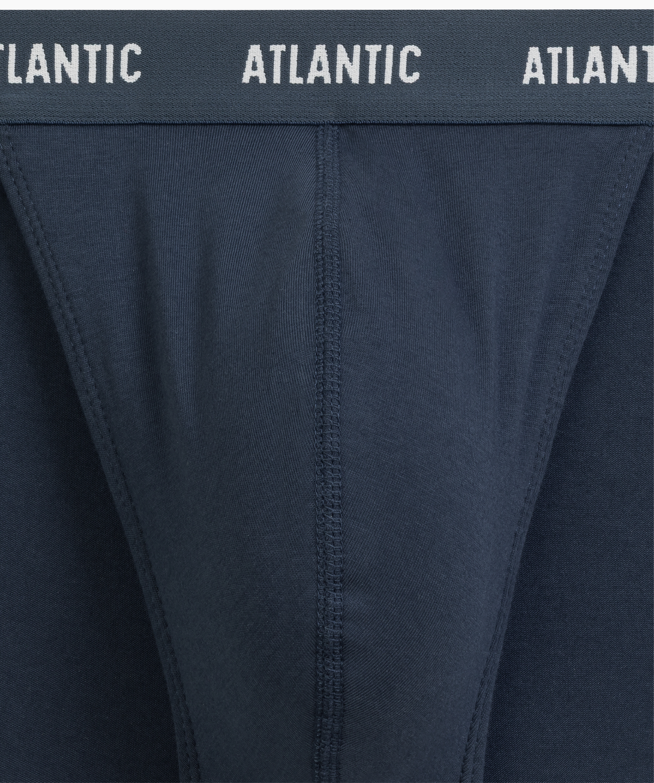 Набор из 3 шт. мужских трусов-слипов Atlantic темно-синего, светло-зеленого и сине-зеленого  цвета. Мужские классические однотонные трусы-танга 3MP-1576 от польского бренда Atlantic на каждый день: превосходно подойдут абсолютно любому мужчине как для повседневной носки, так и для занятий спортом. Анатомический крой этой модели гарантирует идеальную посадку по фигуре и максимальный комфорт. Внешняя пришивная резинка не давит, не скручивается и не натирает при носке, кроме того она же является и боковой частью нижнего белья, высоко открывая бедра. Облегающие мужские трусы слипы имеют низкую линию талии, поэтому могут подойти к любому типу одежды, например, к брюкам или джинсам с заниженной талией. В составе используется мягкий, приятный на ощупь хлопок в сочетании с эластаном. В упаковке представлено трое трусов брифов в различных вариантах расцветок, брендированная резинка из микрофибры выполнена в контрастных цветах и обеспечивает приятные тактильные ощущения для кожи. Кроме того, в нашем интернет-магазине Вы сможете приобрести трусы танга Атлантик 3MP-1576 из наличия по самым выгодным ценам. Стильная фирменная упаковка нашего нижнего белья помогут однозначно сделать Вам верный выбор!