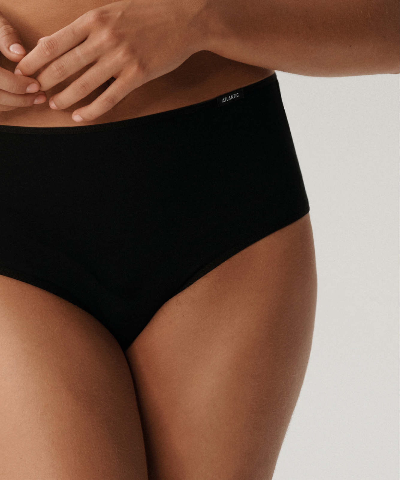 Набор из 3 шт. женских трусов-слипов макси Atlantic в базовом чёрном  цвете. Классические однотонные женские трусы слипы 3BLP-585 от польского бренда Atlantic на каждый день: превосходно подойдут абсолютно любой женщине как для повседневной носки, так и для активного занятия спортом (например, аэробики или йоги). Крой этой модели гарантирует идеальную посадку по фигуре и максимальный комфорт. Тонкая резинка в поясе и по ножке не давит, не натирает и не скатывается при носке, а также обеспечивает контакт только с натуральным материалом. Облегающие женские трусы слипы имеют высокую линию талии и очень широкую боковую часть. Такая модель корректирует недостатки фигуры за счет высокой посадки в талии, закрывающей живот, и подходит для женщин, которые предпочитают не демонстрировать свое тело. В составе используется мягкий, приятный на ощупь хлопок в сочетании с эластаном. Трикотажное хлопковое полотно является прочным материалом, устойчивым к высоким температурам и растяжению, благодаря чему нижнее белье надолго сохраняет свой внешний вид и потребительские свойства. В упаковке представлено трое трусов макси в одинаковой расцветке, доступные варианты расцветок - белая, чёрная или бежевая.