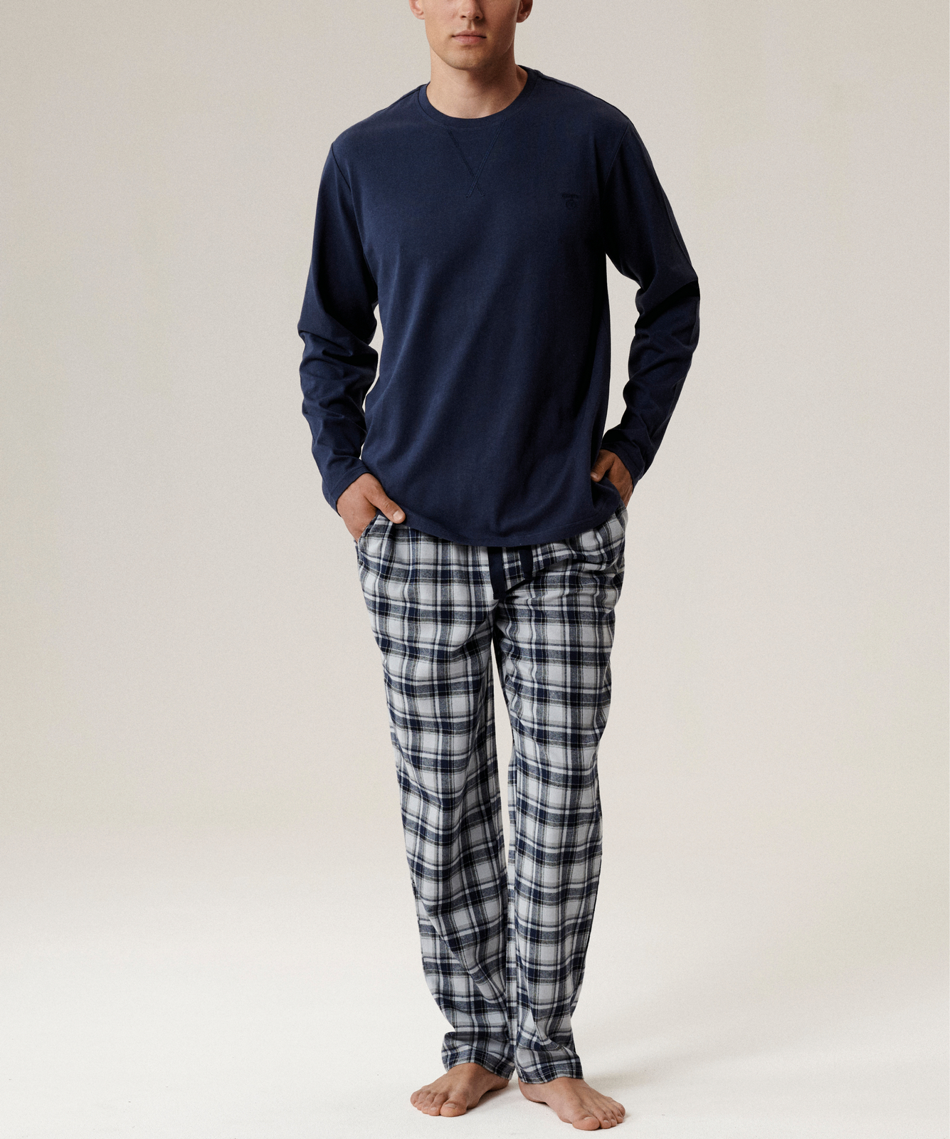 Пижама состоит из футболки с длинным рукавом (лонгслива) и длинных брюк. Изготовлена из хлопка высочайшего качества с бархатистым эффектом «Peach Effect».