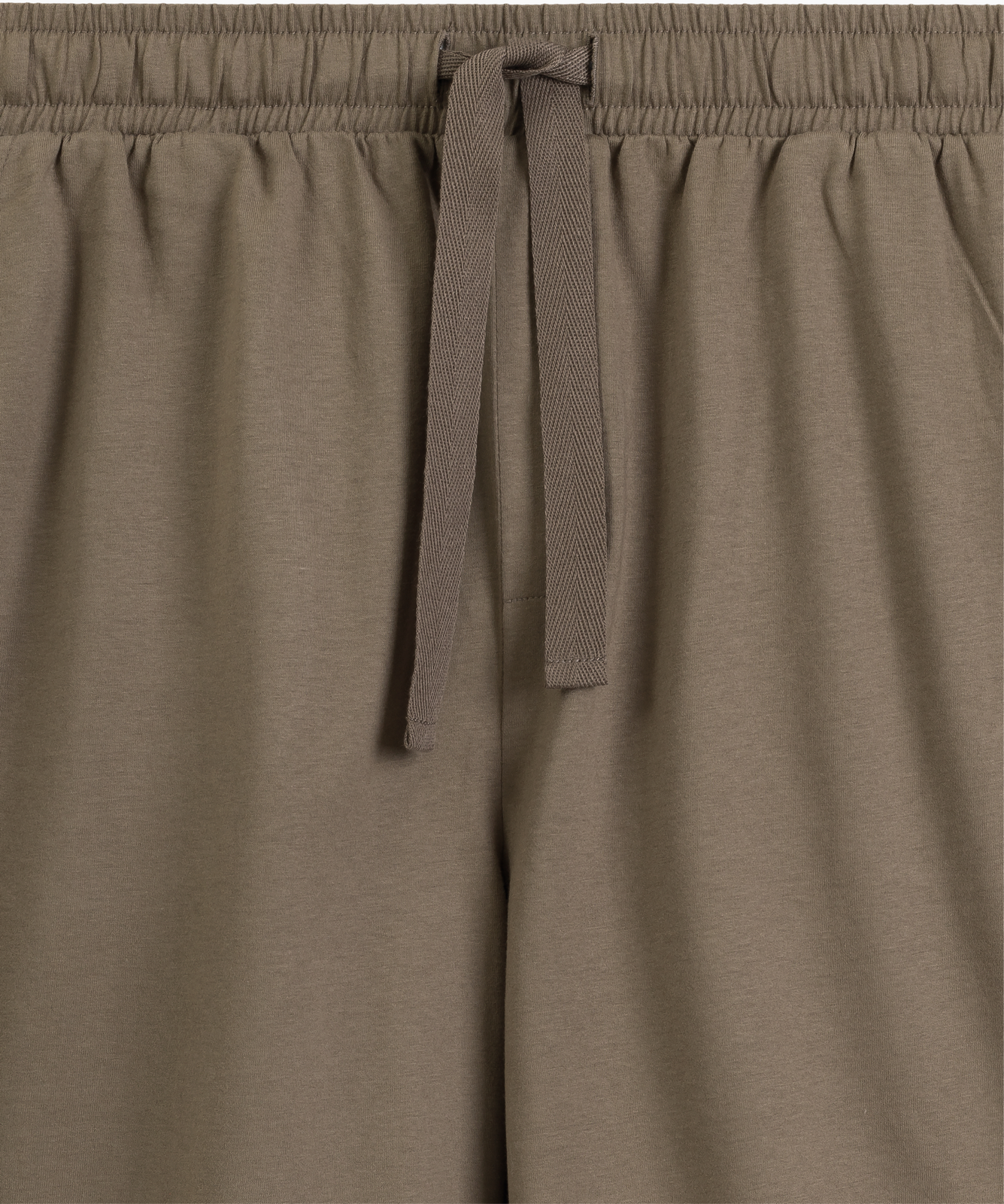 Классический фасон, свободный крой, штанины средней длины, практичные карманы по бокам. Изготовлены из хлопка высочайшего качества с бархатистым эффектом «Peach Effect».