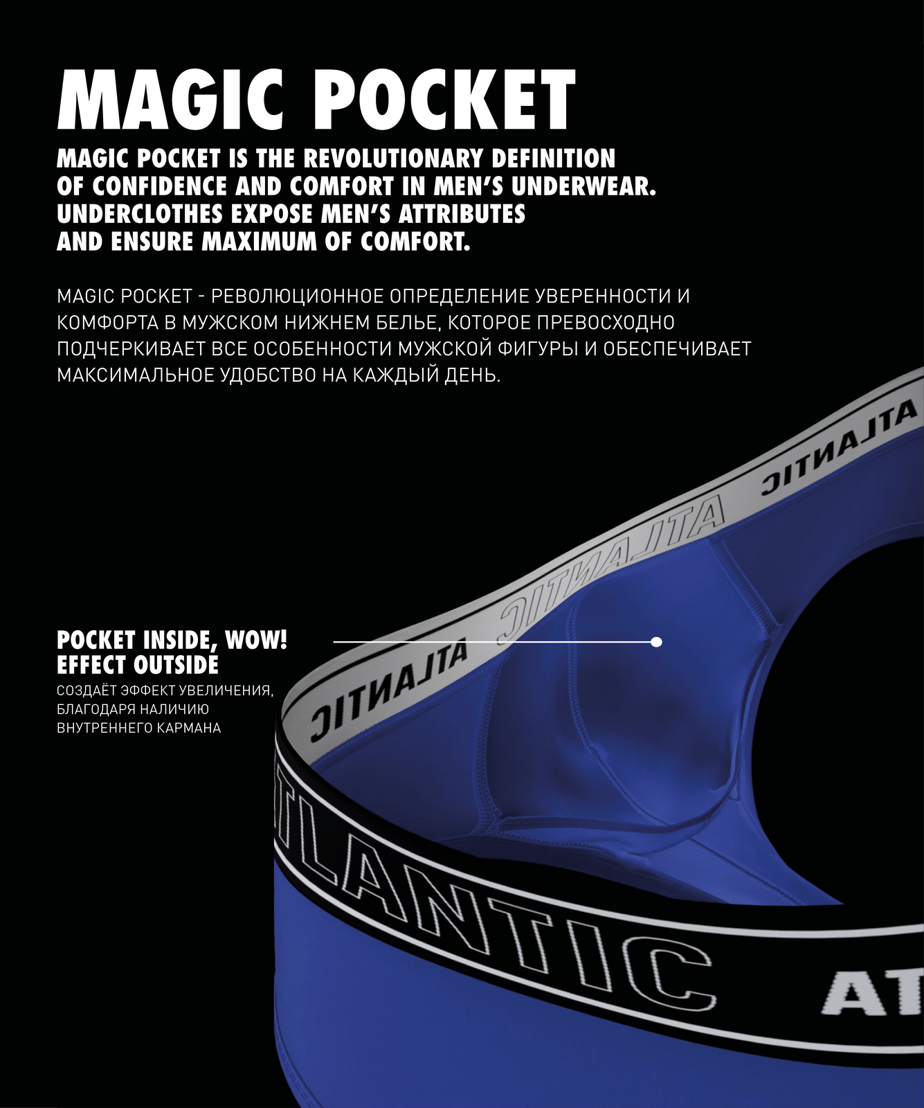 Мужские трусы-шорты Atlantic MH-1200 голубого цвета из лимитированной коллекции Magic Pocket — это идеальный выбор для повседневной носки и активного образа жизни. Модель выполнена из мягкого трикотажного полотна с добавлением хлопка и эластана, что обеспечивает прочность, устойчивость к растяжению и сохранение формы даже после многочисленных стирок. Спортивный крой и облегающий силуэт с низкой линией талии и укороченными штанинами гарантируют идеальную посадку и комфорт в течение всего дня. Внешняя резинка из микрофибры не давит и не натирает, а благодаря эластичности материала трусы-шорты подходят под любую одежду, включая брюки и джинсы с заниженной талией.                                                                                                Главная особенность коллекции Magic Pocket —инновационный внутренний карман, создающий эффект визуального увеличения. Эта деталь подчеркнёт вашу уверенность и станет стильным акцентом в гардеробе.                                      Модель представлена в нескольких цветовых вариантах, а широкая размерная сетка от S до XXL позволяет подобрать идеальный вариант. Стильная фирменная упаковка делает эти трусы-шорты отличным подарком для мужчин любого возраста.                                                                                                                    Купить мужские трусы-шорты Atlantic MH-1200 голубого цвета из коллекции Magic Pocket можно в нашем интернет-магазине по выгодной цене с быстрой доставкой.
