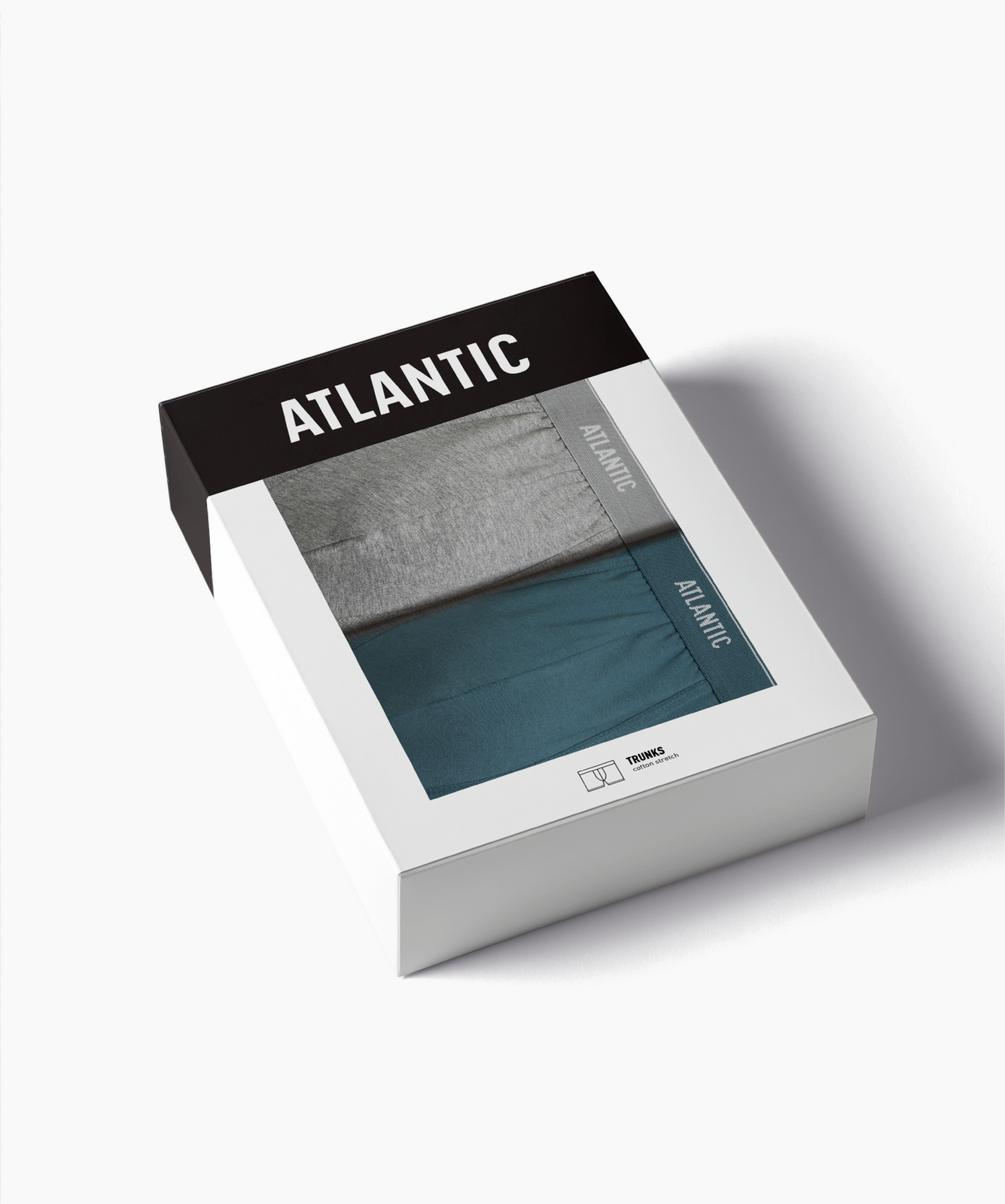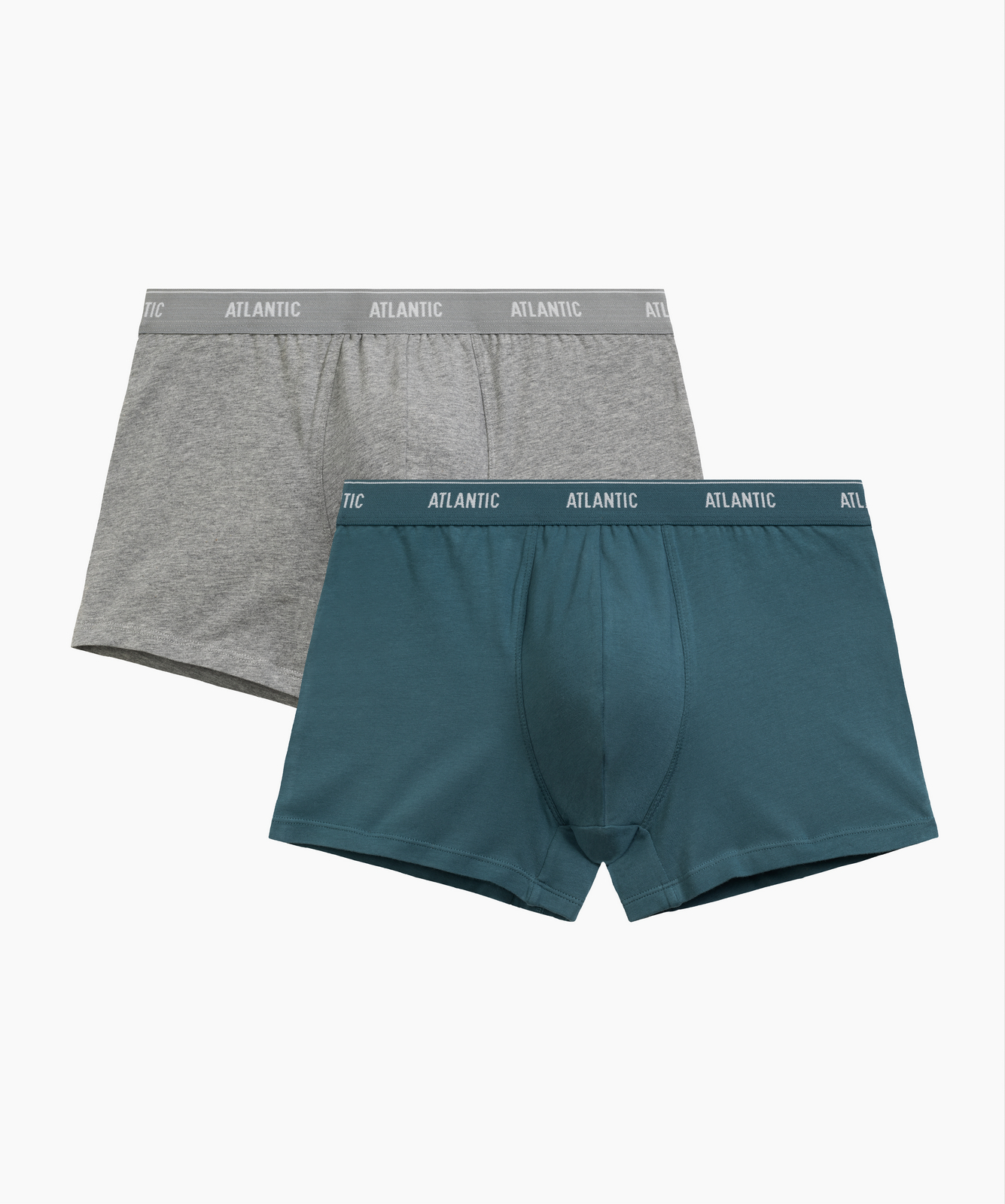 Набор из двух пар мужских трусов-шорт Atlantic в стильных расцветках серый меланж и морская волна — это идеальное решение для повседневной носки и активного образа жизни. Модель 2RMH-011 от польского бренда Atlantic выполнена из мягкого хлопка с добавлением эластана, что обеспечивает идеальную посадку по фигуре и свободу движений во время занятий спортом или повседневной носки.
