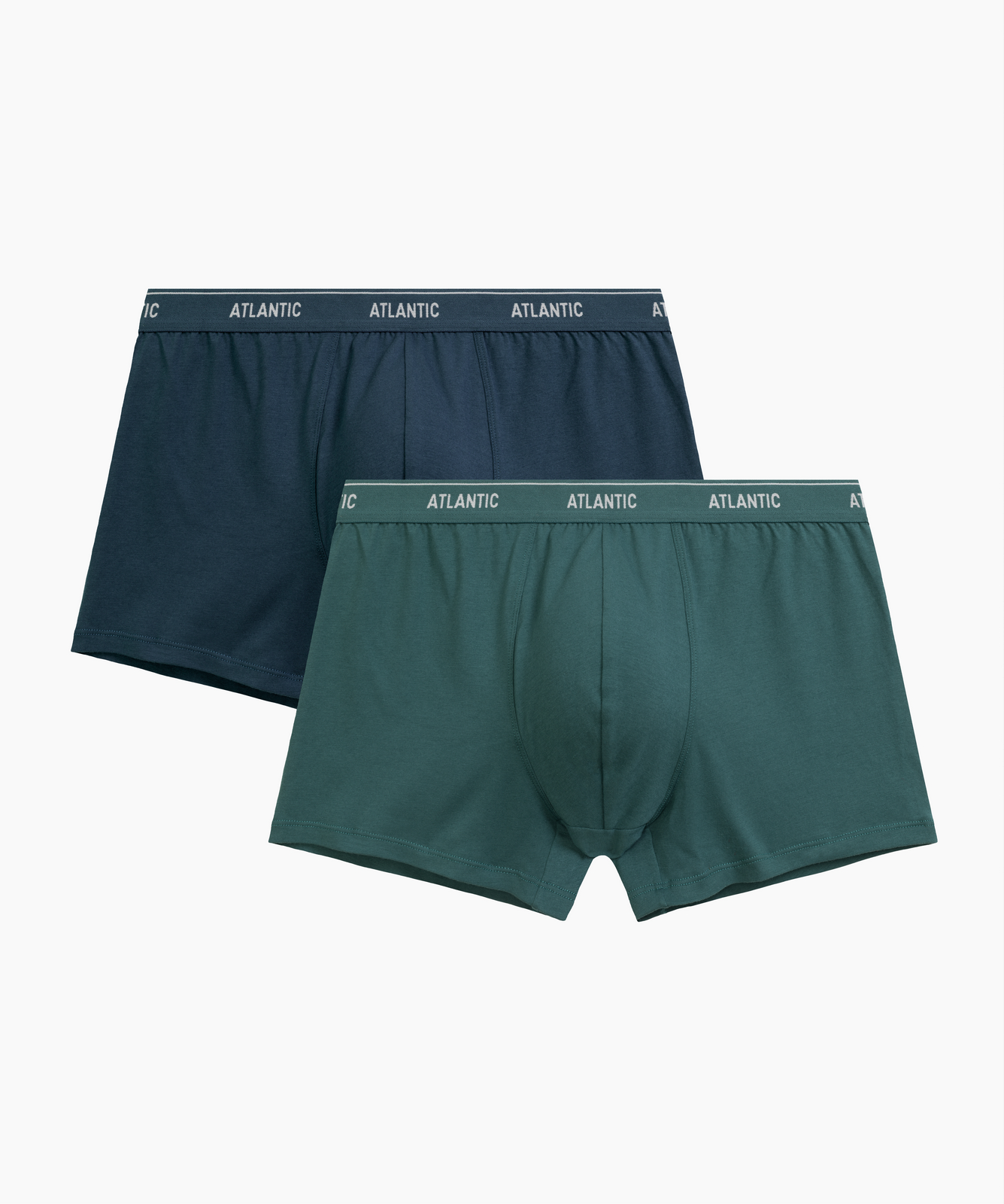 Набор из 2 шт. мужских трусов-шорт Atlantic сине-зелёного и зелёного цвета. Мужские однотонные трусы-шорты 2RMH-011 от польского бренда Atlantic на каждый день: превосходно подойдут абсолютно любому мужчине как для повседневной носки, так и для активного занятия спортом (например, бега, фитнеса, физических или силовых нагрузок). Анатомически выверенный спортивный крой этой модели гарантирует идеальную посадку по фигуре и максимальный комфорт. Внешняя пришивная резинка не давит, не скручивается и не натирает при носке. Облегающие мужские трусы шорты имеют среднюю линию талии, штанины стандартной длины и профилированный гульфик, поэтому могут подойти к любому типу одежды. Отличительная особенность данной модели - силиконовый логотип на резинке с нежным, блестящим покрытием. В составе используется мягкий, приятный на ощупь хлопок в сочетании с эластаном. Трикотажное хлопковое полотно является прочным материалом, устойчивым к высоким температурам и растяжению, благодаря чему нижнее белье надолго сохраняет свой внешний вид и потребительские свойства. Брендированная резинка из микрофибры обеспечивает приятные тактильные ощущения для кожи. Нижнее белье Атлантик будет превосходным подарком для мужчин всех возрастов.