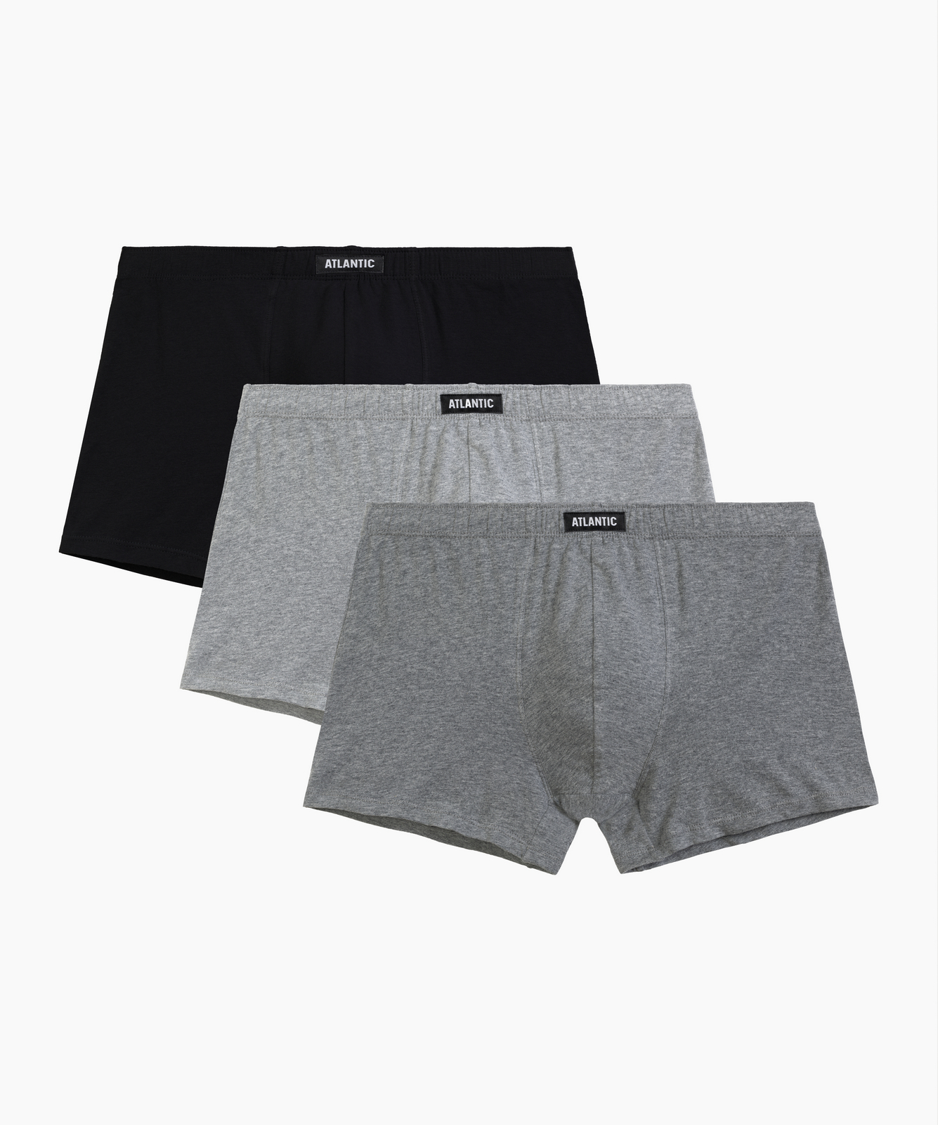 Набор из 3 мужских трусов-шорт Atlantic 3BMH-007 из базовой коллекции Basic — три универсальных оттенка: серый меланж, тёмно-серый меланж и классический чёрный. Анатомически выверенный крой со средней линией талии и стандартной длиной штанин обеспечивает идеальную посадку и комфорт для повседневной носки и активного образа жизни. Скрытая туннельная резинка исключает давление и натирание, а эргономичный гульфик добавляет дополнительную поддержку. Мягкий хлопок с эластаном гарантирует воздухопроницаемость, эластичность и долговечность, сохраняя форму после множества стирок. Универсальная цветовая гамма легко сочетается с любым стилем одежды и послужит отличным дополнением вашего базового гардероба. Стильная фирменная упаковка делает набор практичным подарком. Доступны размеры от S до 4XL. Atlantic — проверенное качество и комфорт в каждой детали.