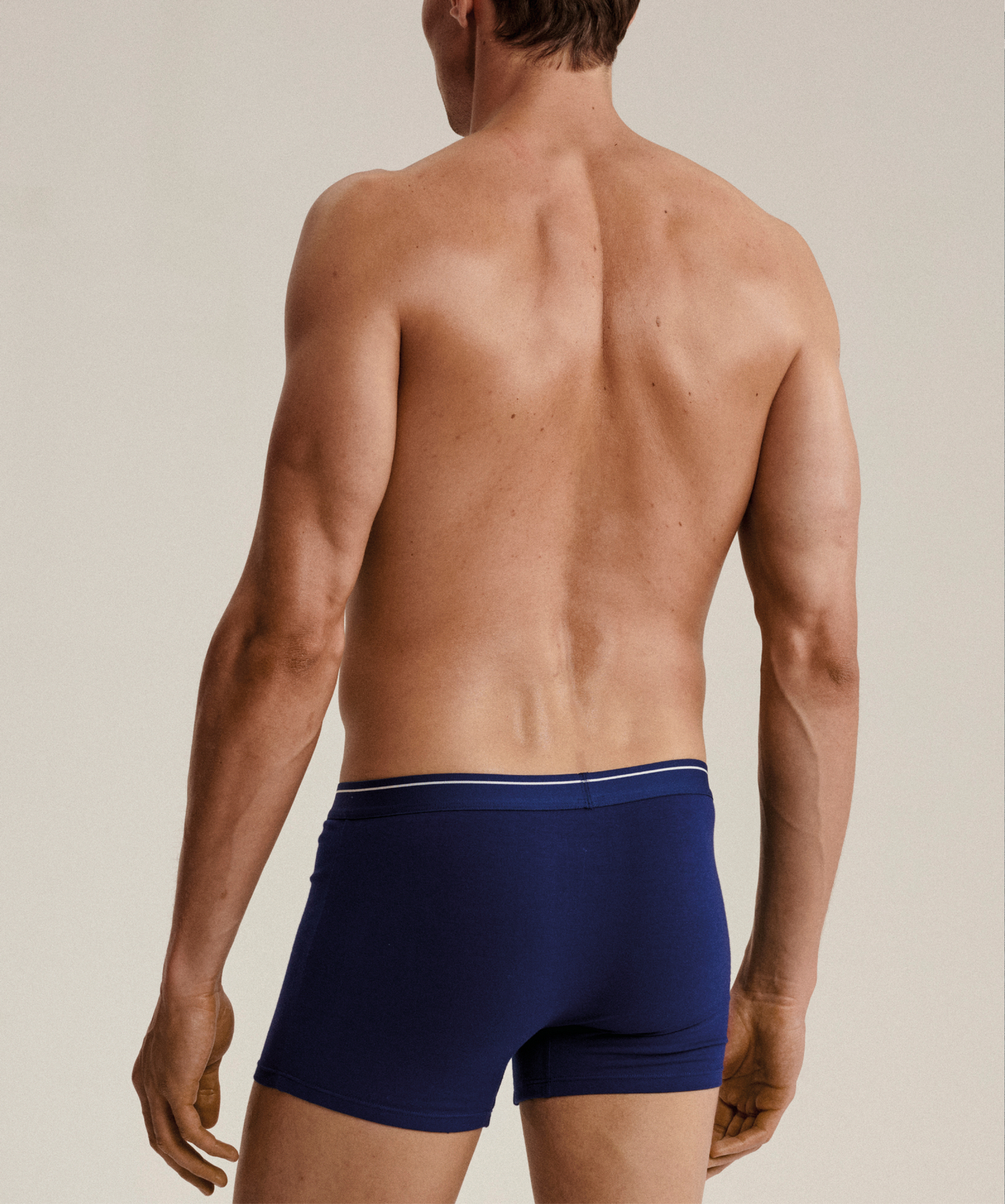 Средняя линия талии и стандартная длина штанин делают эту модель подходящей для любого типа одежды, а профилированный гульфик гарантирует удобство при движении. Брендированная резинка из микрофибры, выполненная в тон или в контрастном цвете, мягко прилегает к телу, не сдавливая и не натирая кожу. Прочное трикотажное полотно устойчиво к деформации и сохраняет форму после многократных стирок.