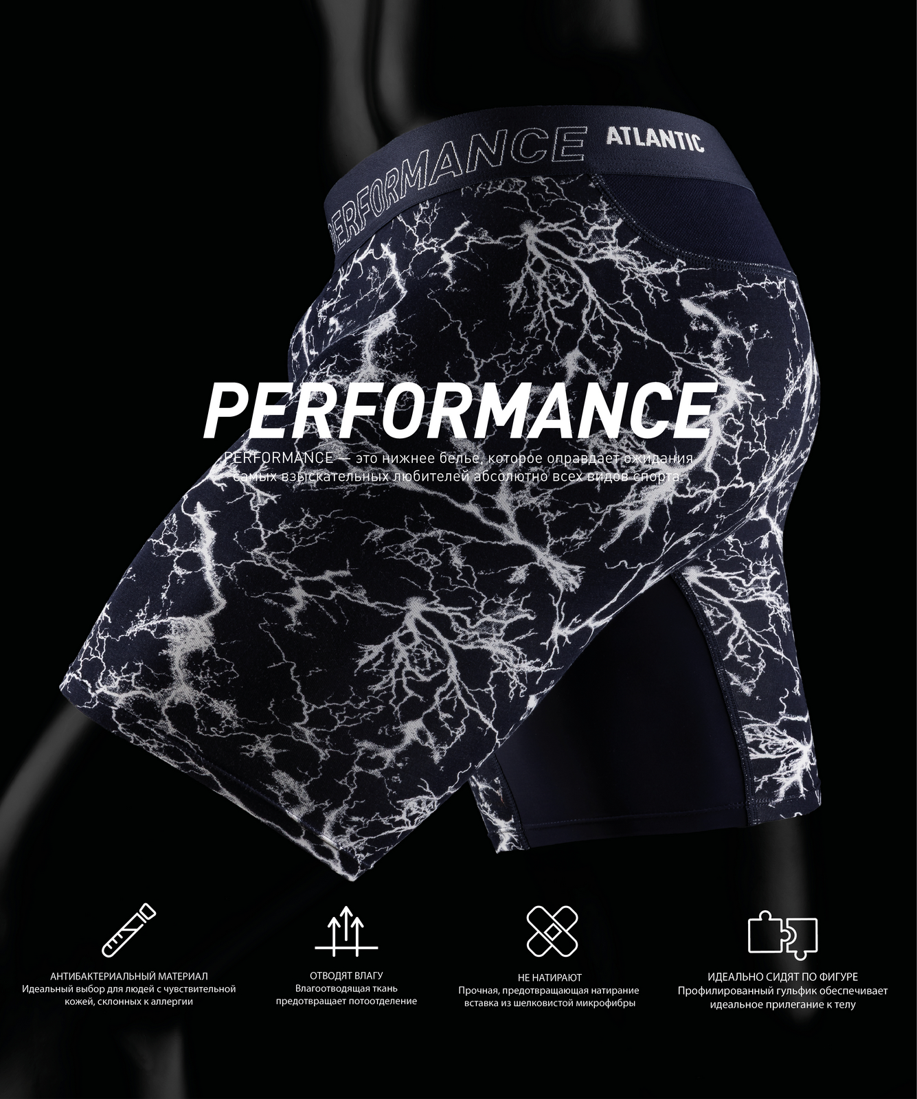 Мужские трусы-шорты удлиненные Atlantic темно-синего цвета из премиальной коллекции. Коллекция Premium - это выбор взыскательных мужчин, которые делают ставку на высочайшее качество, уникальный дизайн и инновационные технологические решения. Мужские трусы-шорты MH-1206 от польского бренда Atlantic относятся к линии спортивного нижнего белья Performance, которая создана специально для мужчин, ведущих активный образ жизни, для которых спорт играет не самую последнюю роль. Нижнее белье Performance подойдет абсолютно любому мужчине для активного занятия спортом (например, фитнеса, бега, силовых и физических нагрузок), однако его также можно использовать и для повседневной носки. Анатомически выверенный спортивный крой этой модели гарантирует идеальную посадку по фигуре и максимальный комфорт во время занятий спортом. Внешняя пришивная резинка не давит, не скручивается и не натирает при носке. Облегающие мужские трусы шорты имеют среднюю линию талии, удлиненные штанины, усиленный профилированный гульфик и дышащую сетчатую вставку сзади, способную быстро отводить влагу. В составе используется дышащий и мягкий бамбук в сочетании с эластаном. Бамбуковое волокно является экологичным и натуральным материалом, который обладает антибактериальными и терморегулирующими свойствами (в жаркую погоду дарит ощущение прохлады, а зимой согревает и позволяет удерживать тепло). Нежный и мягкий на ощупь, бамбук очень похож на шелк, в то же время не уступает в прочности и устойчивости к пиллингуемости других материалам премиального сегмента. Такой материал не вызывает аллергии, поэтому изделия из бамбука часто рекомендуются людям с чувствительным типом кожи. Даже после многих стирок бамбук сохраняет свою мягкость и цвет, поэтому нижнее белье из бамбука не теряет своего внешнего вида и потребительских свойств долгое время. Данная модель мужского нижнего белья представлена в темно-синей расцветке с абстрактным линиями в виде молний, а брендированная резинка из микрофибры обеспечивает приятные тактильные ощущения для кожи. Нижнее белье Атлантик будет превосходным подарком для мужчин всех возрастов: молодым парням и подросткам подойдут модели нижнего белья в яркой цветовой гамме и с паттерном или рисунком, более взрослым мужчинам - нижнее белье в сдержанных или строгих цветах, хотя иногда можно нарушить правила и поэкспериментировать. Кроме того, в нашем интернет-магазине Вы сможете приобрести трусы шорты Атлантик MH-1206 из наличия по самым выгодным ценам. Широкая размерная сетка с самыми популярными (от S до XXL) и большими (3XL, 4XL) размерами, а также стильная фирменная упаковка нашего нижнего белья помогут однозначно сделать Вам верный выбор!