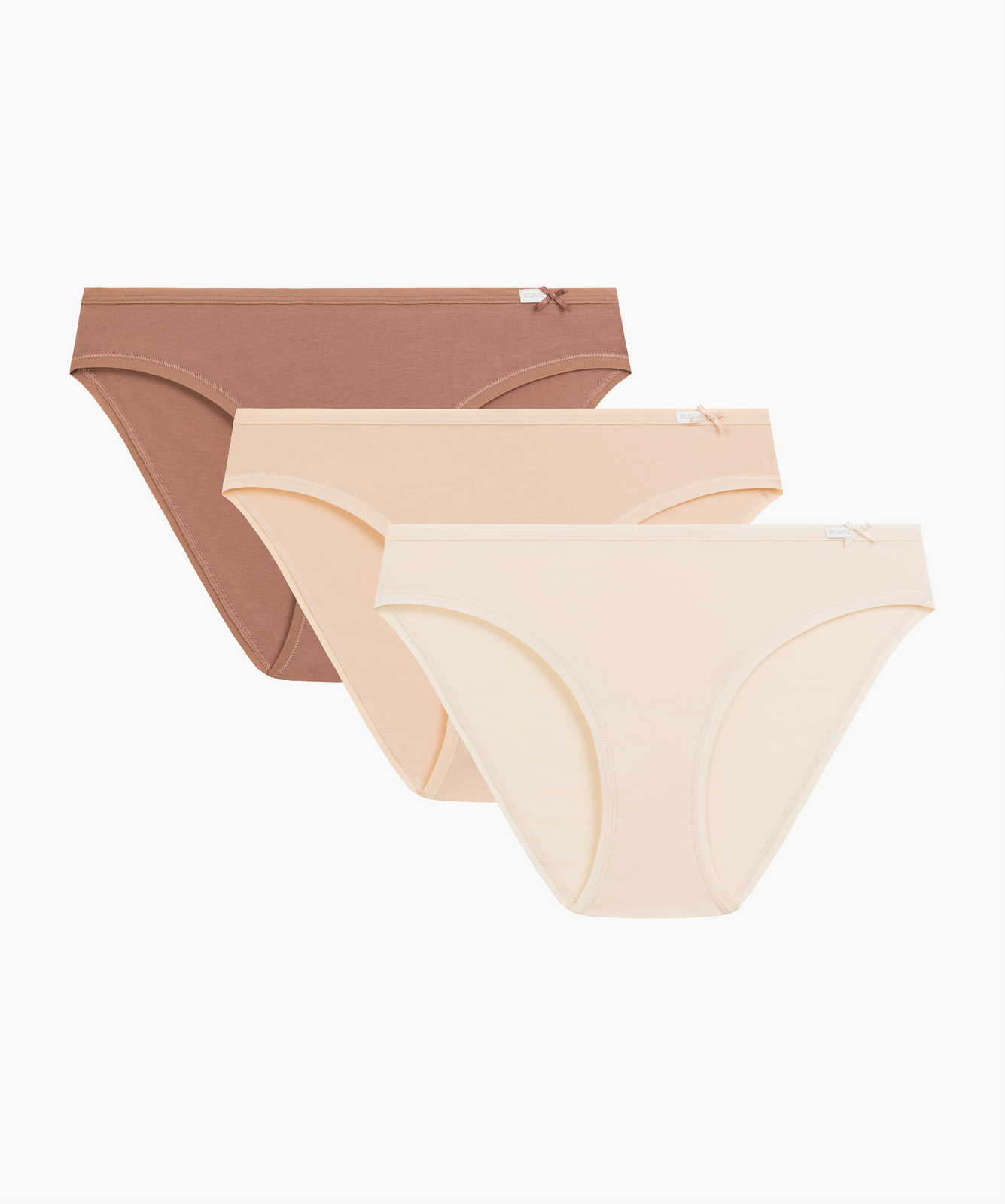 Трусы женские бикини Atlantic, набор из 3 шт., хлопок, светло-кофейные + светло-персиковые + кремовые, 3CLP-001