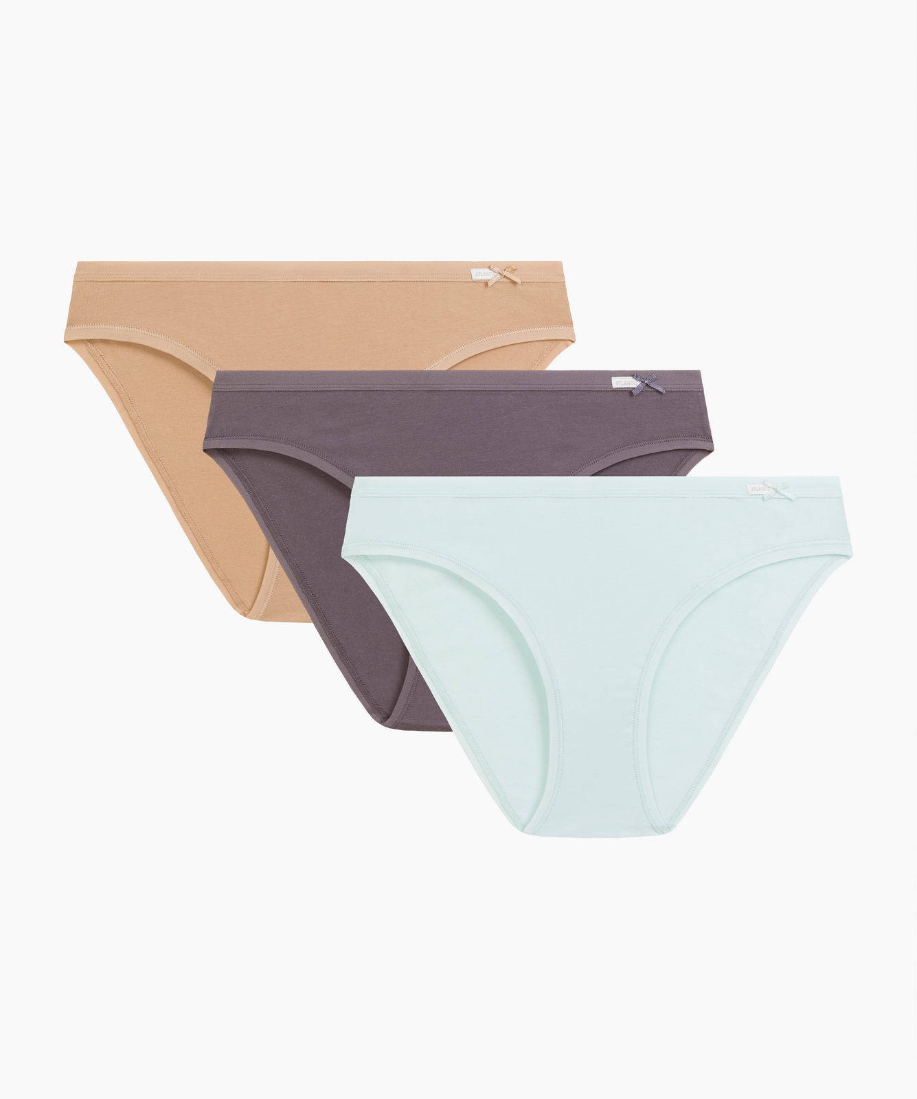 Трусы женские спорт Atlantic, набор из 3 шт., хлопок, бежевые + каменно-серые + мятные, 3CLP-002