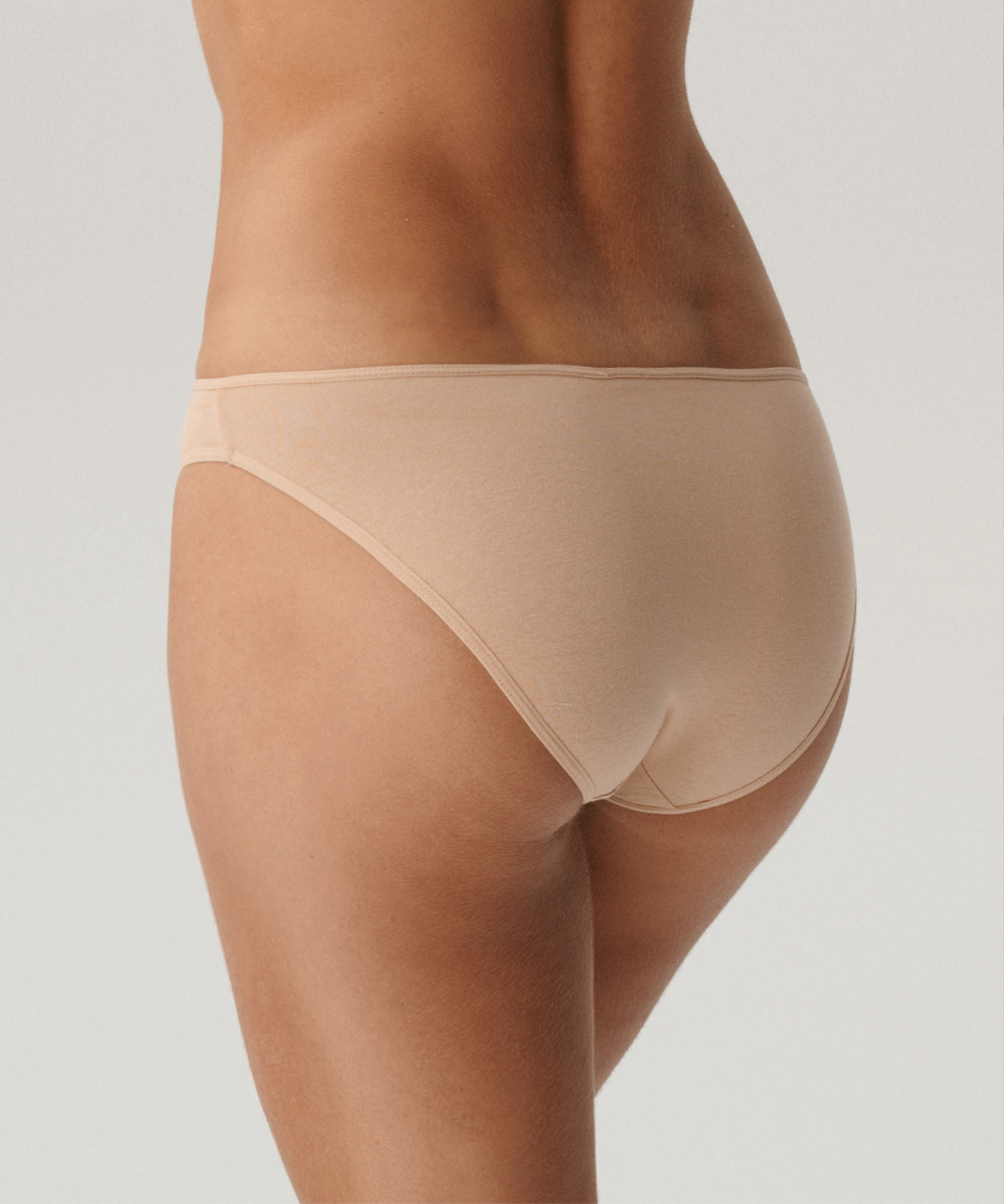 Модель со средней линией талии и универсальной шириной по бокам, закрыта сзади. Благодаря высоко вырезанной линии бедра, визуально удлиняет ноги. Идеально подходит для повседневной носки.