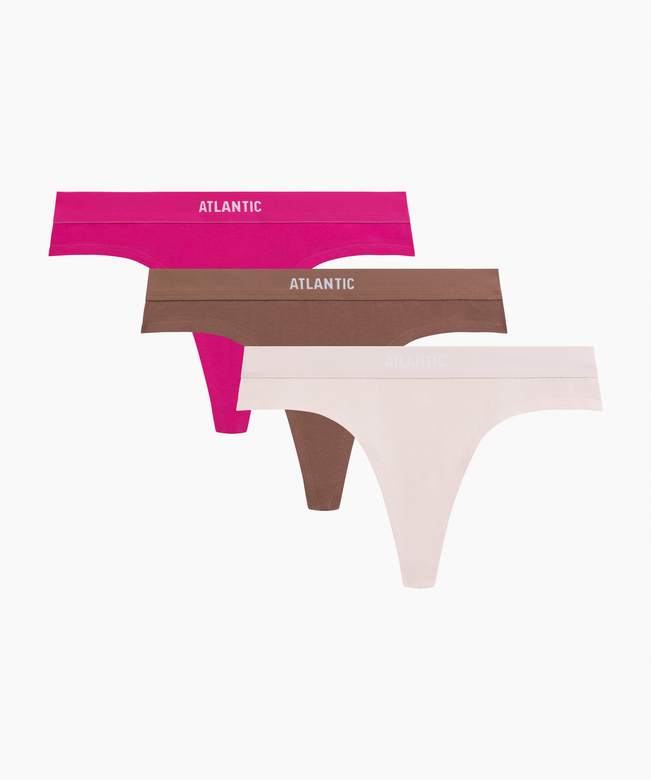 Трусы женские стринги Atlantic, набор из 3 шт., хлопок, фуксия + светлый капучино + светло-розовый, 3CLP-013