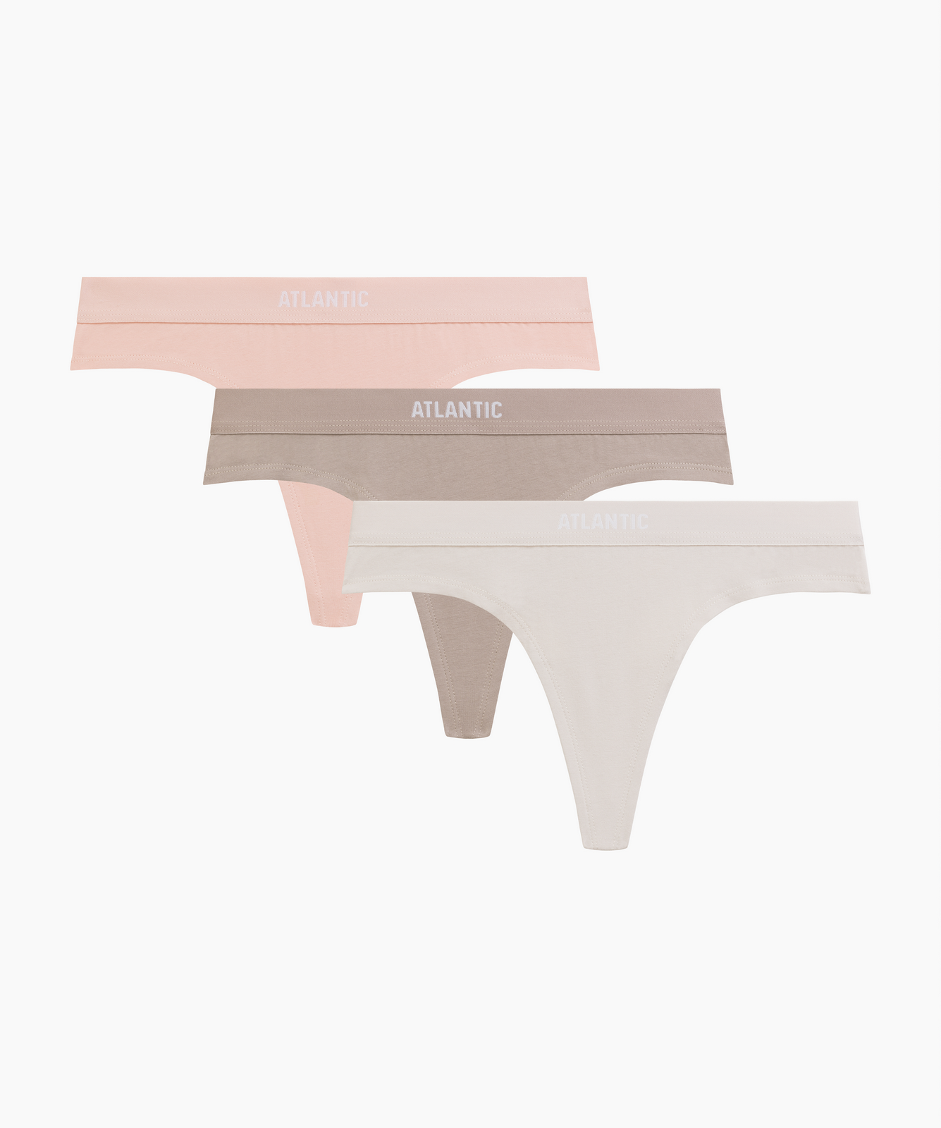 Трусы женские стринги Atlantic, набор из 3 шт., хлопок, персиковый + песочный + светло-бежевый, 3CLP-013