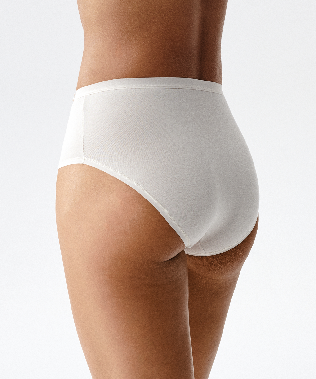 Модель со средней линией талии и широкой боковой деталью, закрыта сзади. По посадке напоминает трусики-шорты. Идеально подходит для повседневной носки.