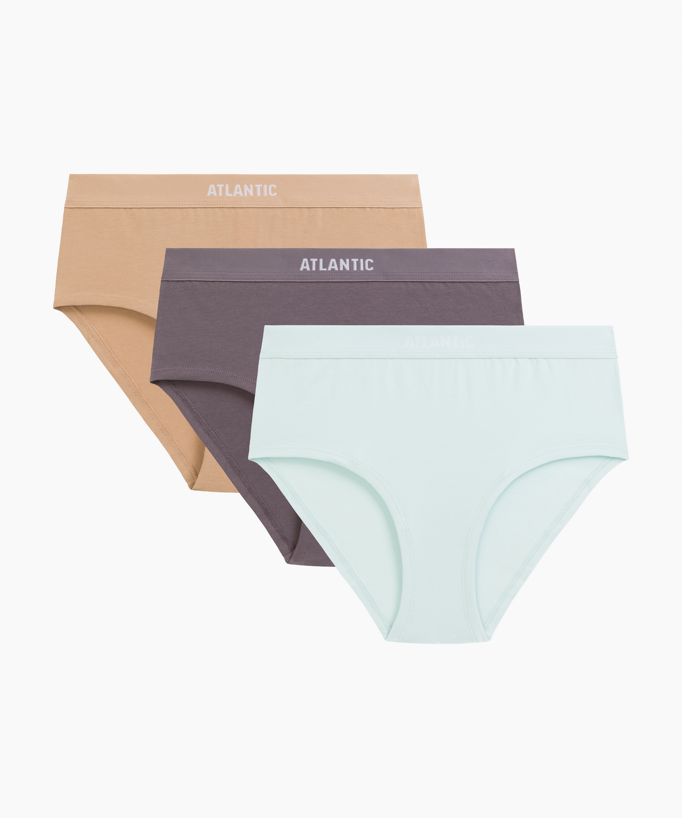 Трусы женские макси спорт Atlantic, набор из 3 шт., хлопок, бежевые + каменно-серые + мятные, 3CLP-009