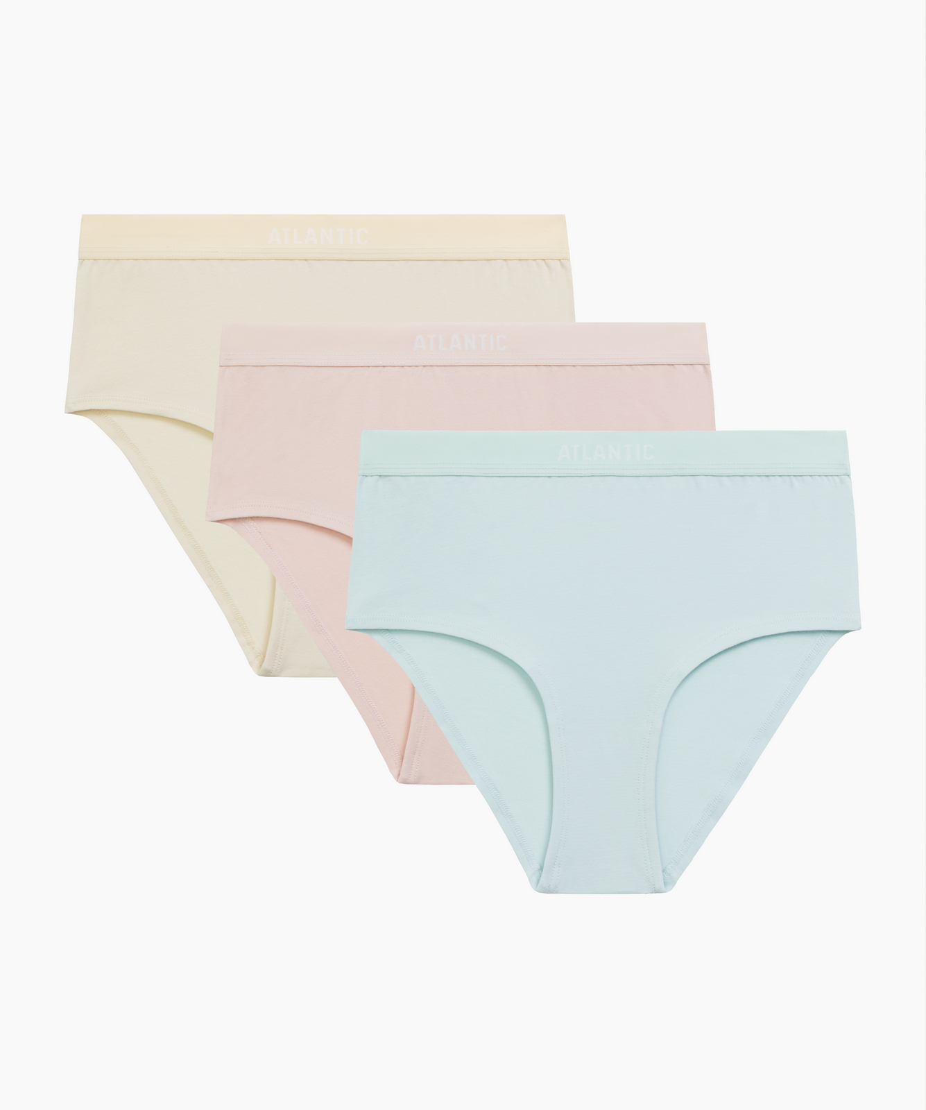 Трусы женские макси спорт Atlantic, набор из 3 шт., хлопок, бежевые + ванильные + светло-голубые, 3CLP-009