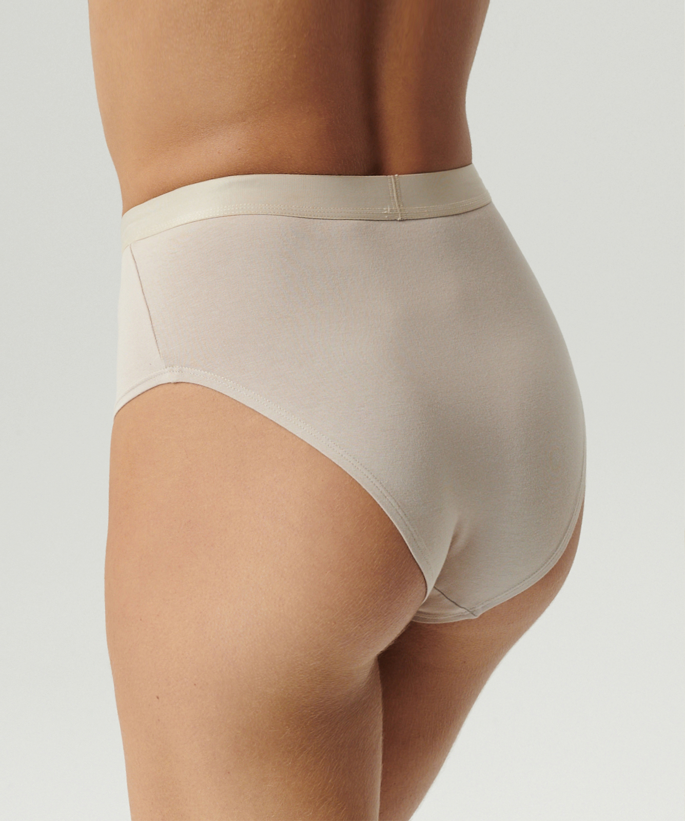 Модель со средней линией талии и универсальной шириной по бокам, закрыта сзади. Благодаря высоко вырезанной линии бедра, визуально удлиняет ноги. Идеально подходит для повседневной носки.