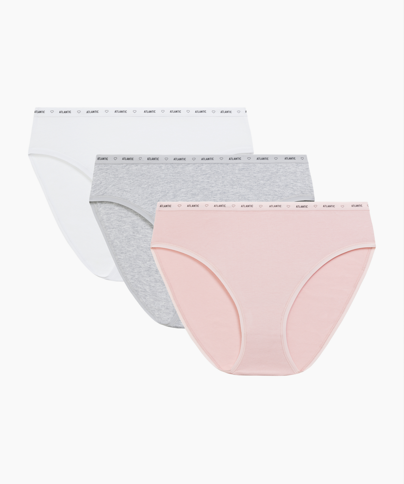 Трусы женские спорт с высокой посадкой Atlantic, набор из 3 шт., хлопок, белые + светло-серый меланж + светло-розовые, 3CLP-010