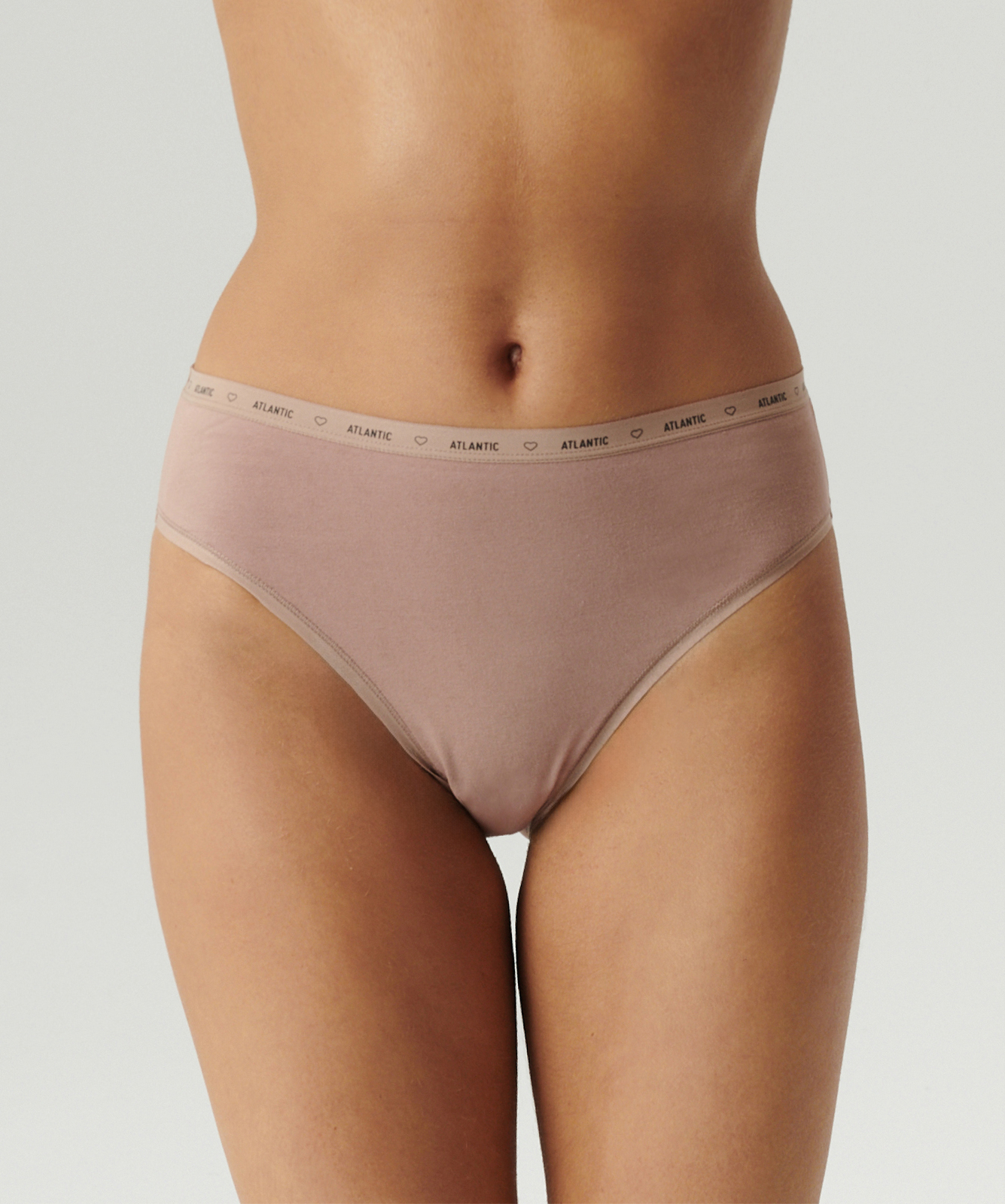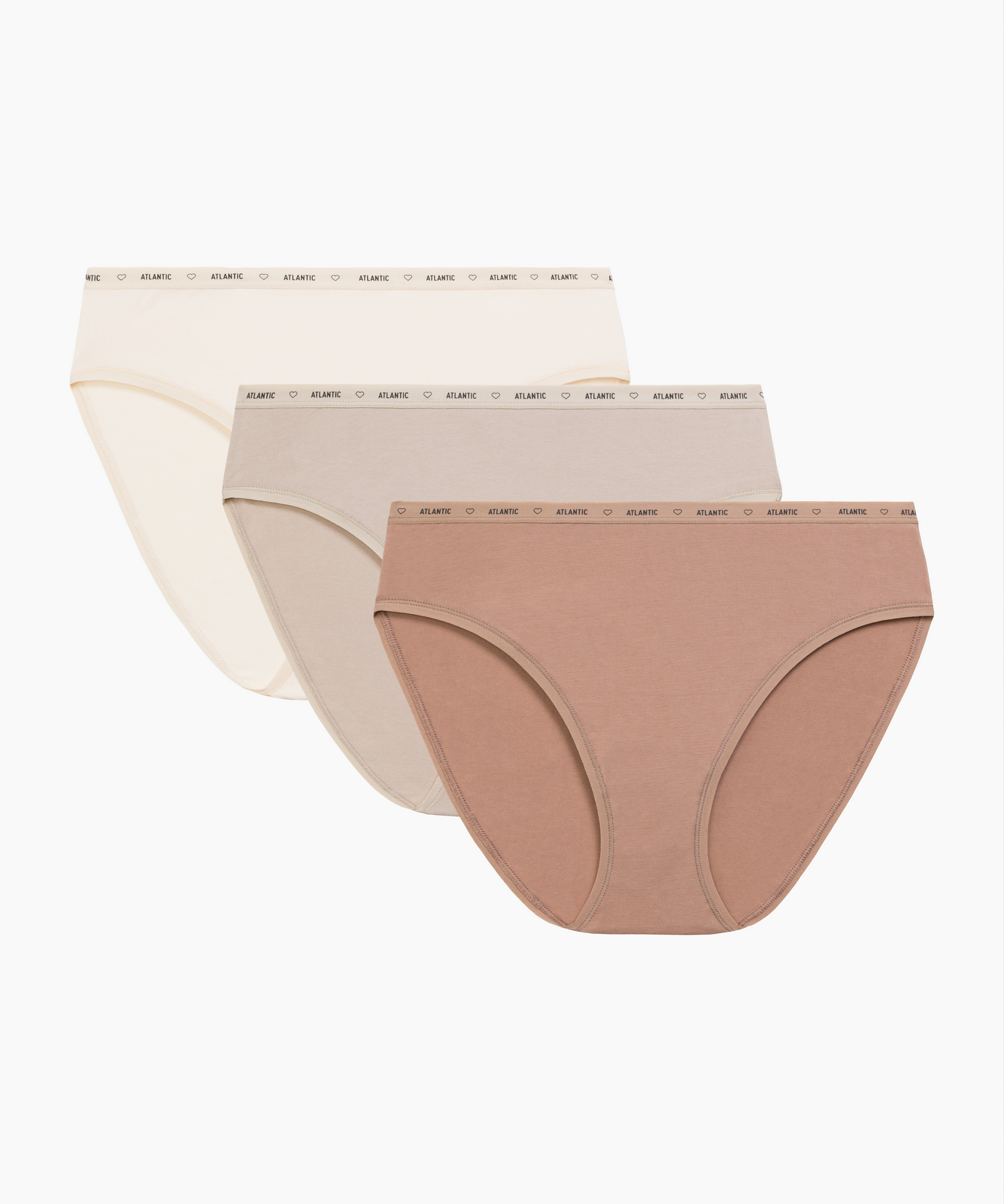 Трусы женские спорт с высокой посадкой Atlantic, набор из 3 шт., хлопок, тёмные экрю + бежевые + тёмно-бежевые, 3CLP-010