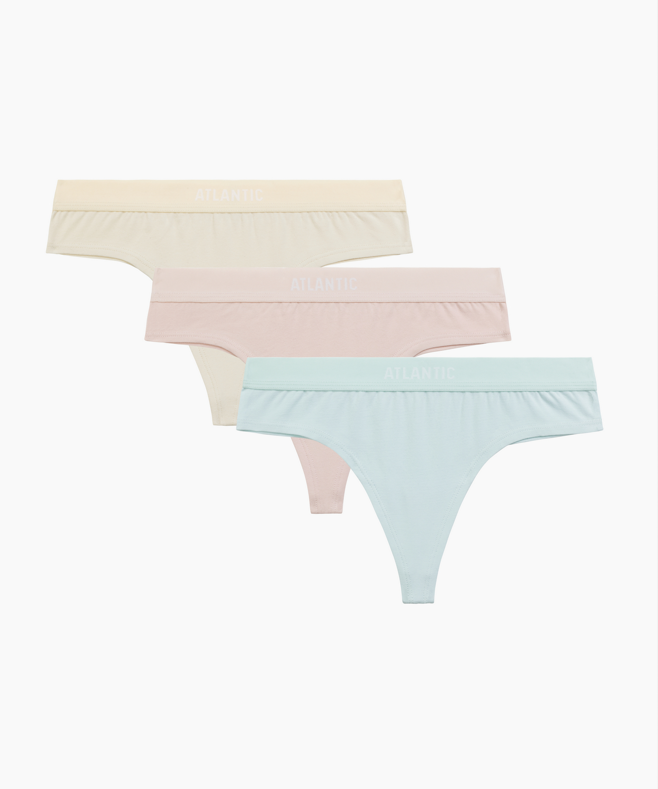 Трусы женские стринги Atlantic, набор из 3 шт., хлопок, бежевые + ванильные + светло-голубые, 3CLP-013